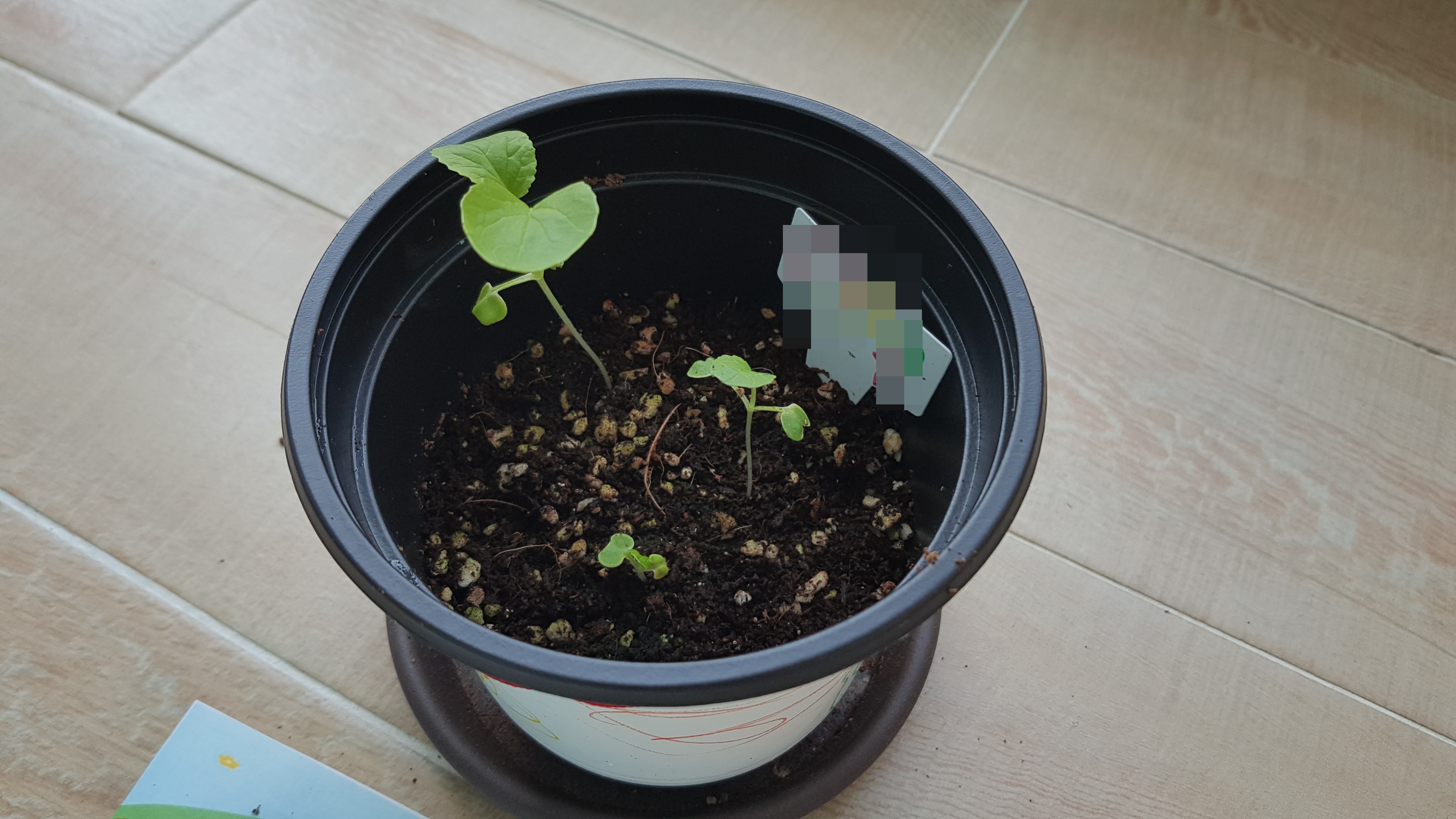 동글이에게 씨앗 몇개 심어왔냐고 물었을 때 한 개 심었다고 얘기해줘서 그러려니 했는데 나중에 싹은 세개가 났어요.