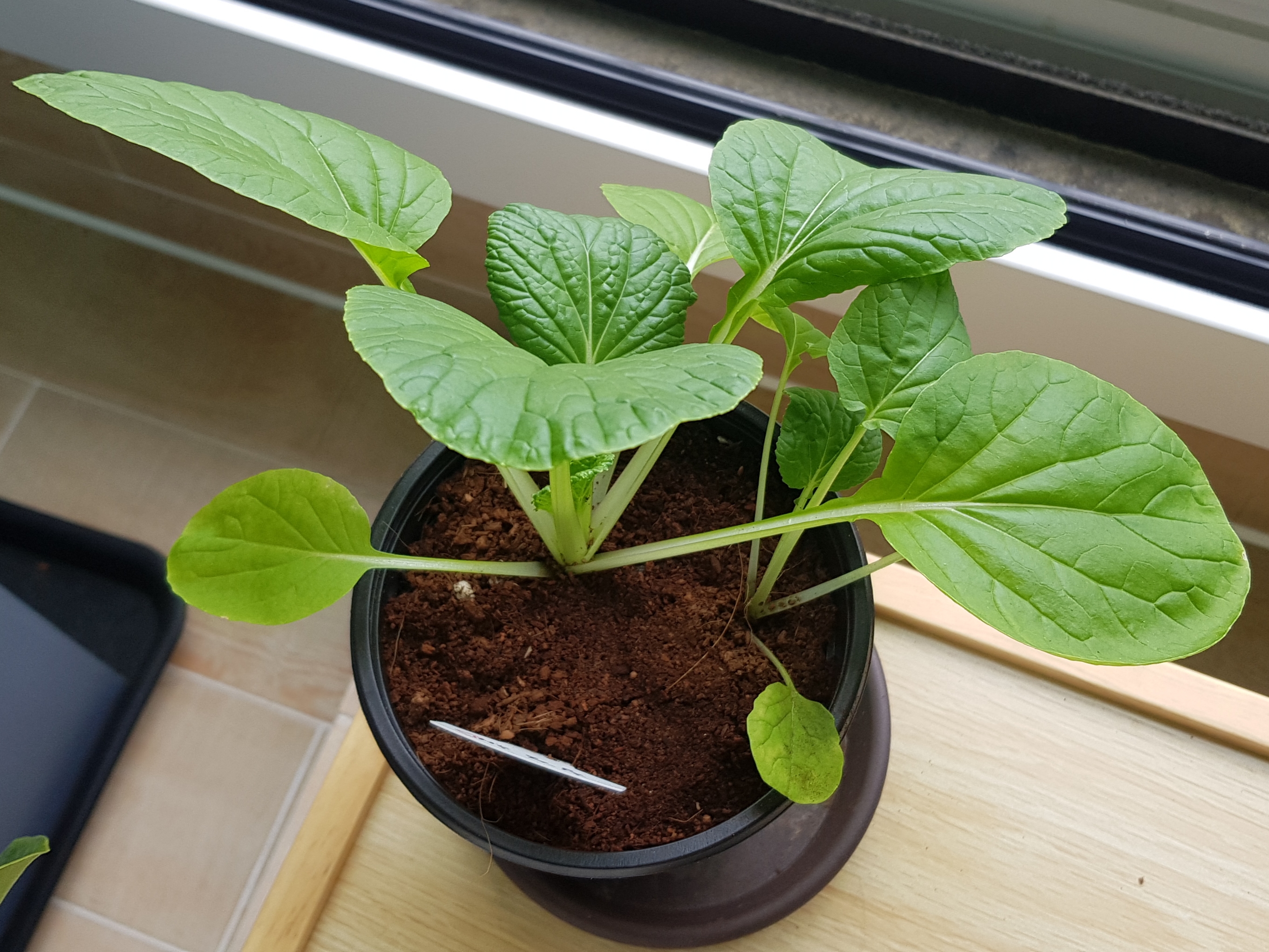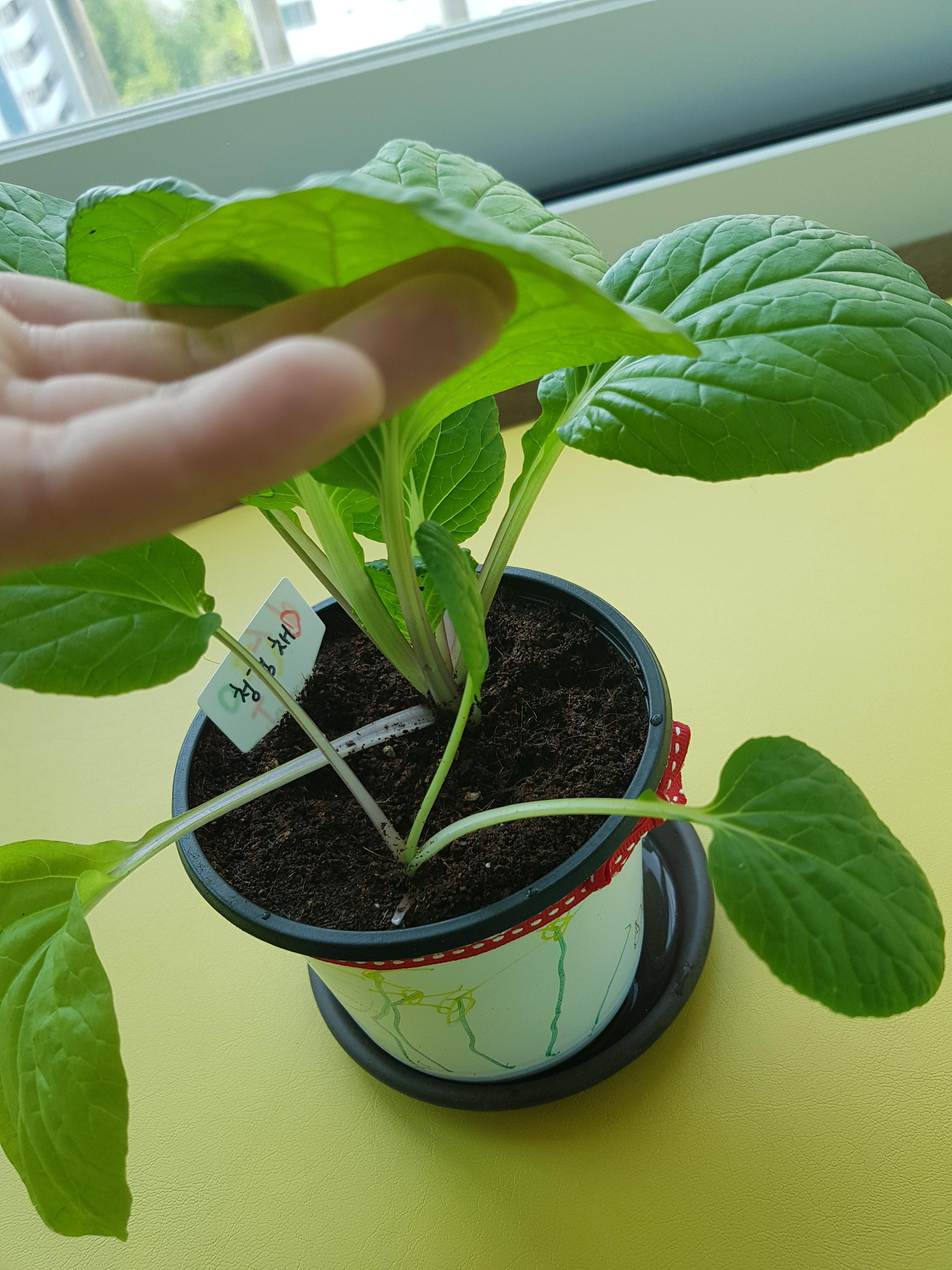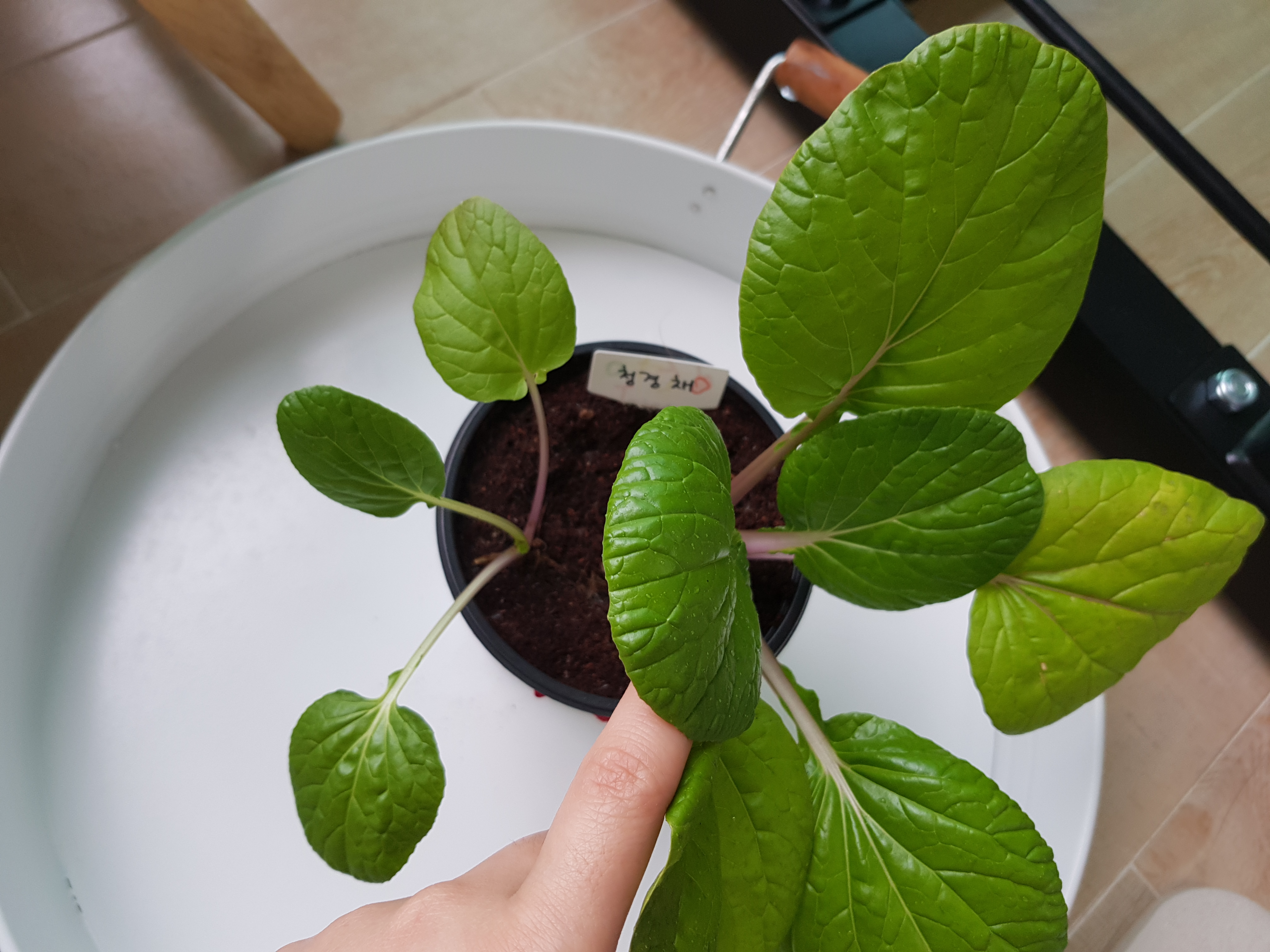 맨 처음 싹을 틔웠던 청경채는 잎사귀가 제법 자랐어요.