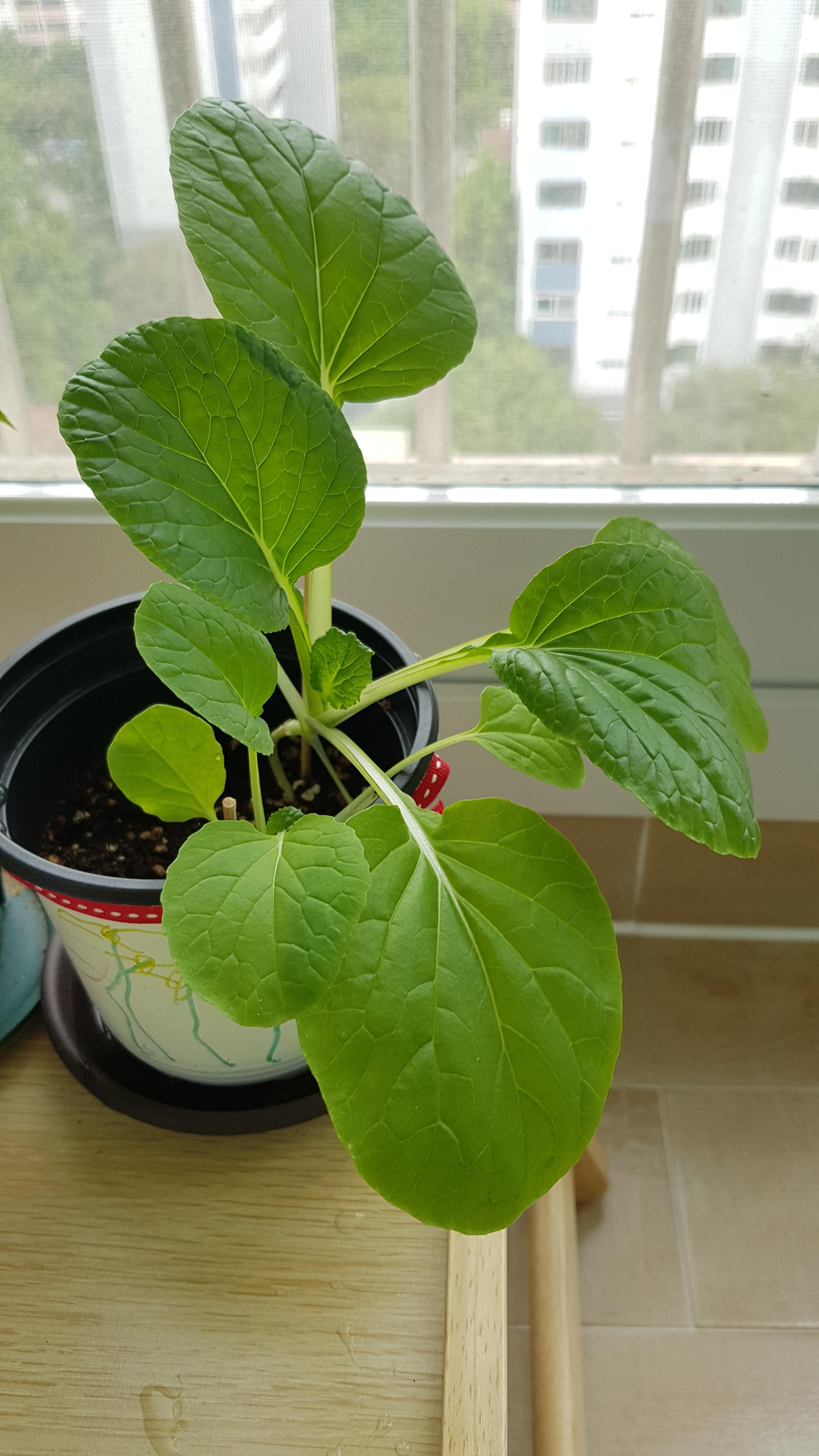 더 키워도 되겠지만 화분도 작고 이 정도면 요리활동 할 수 있겠다 싶어 청경채를 수확하기로 했어요.