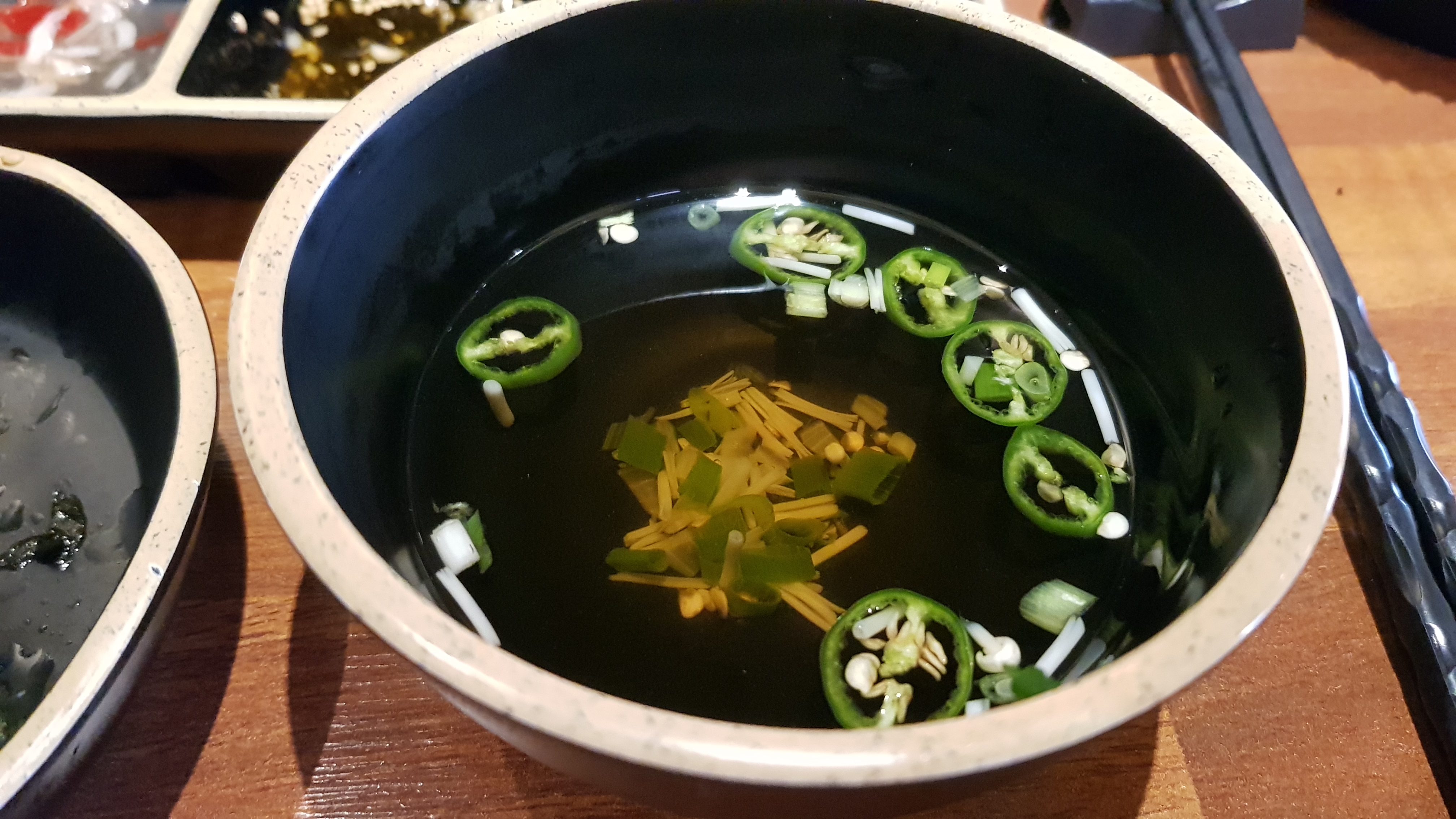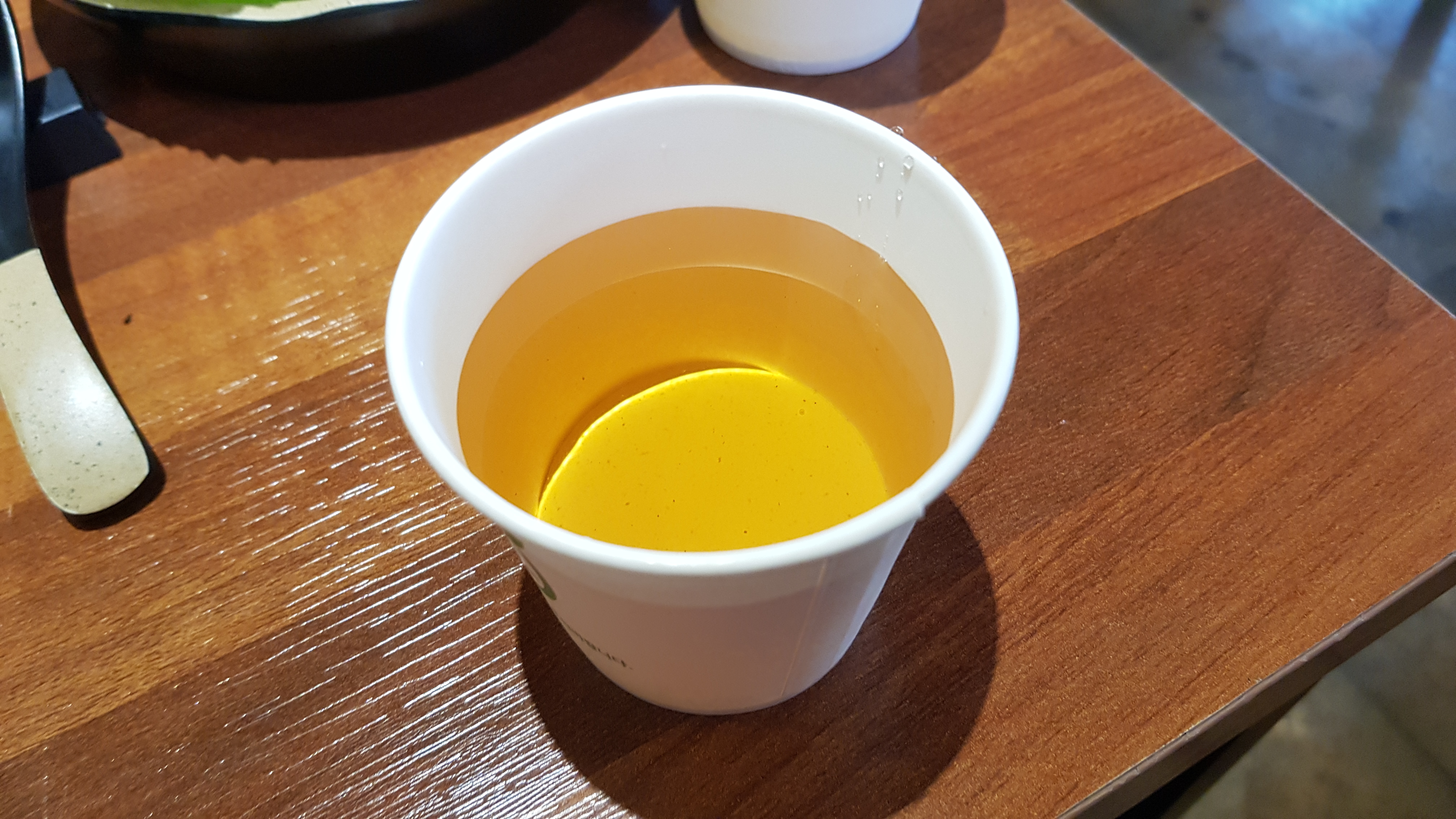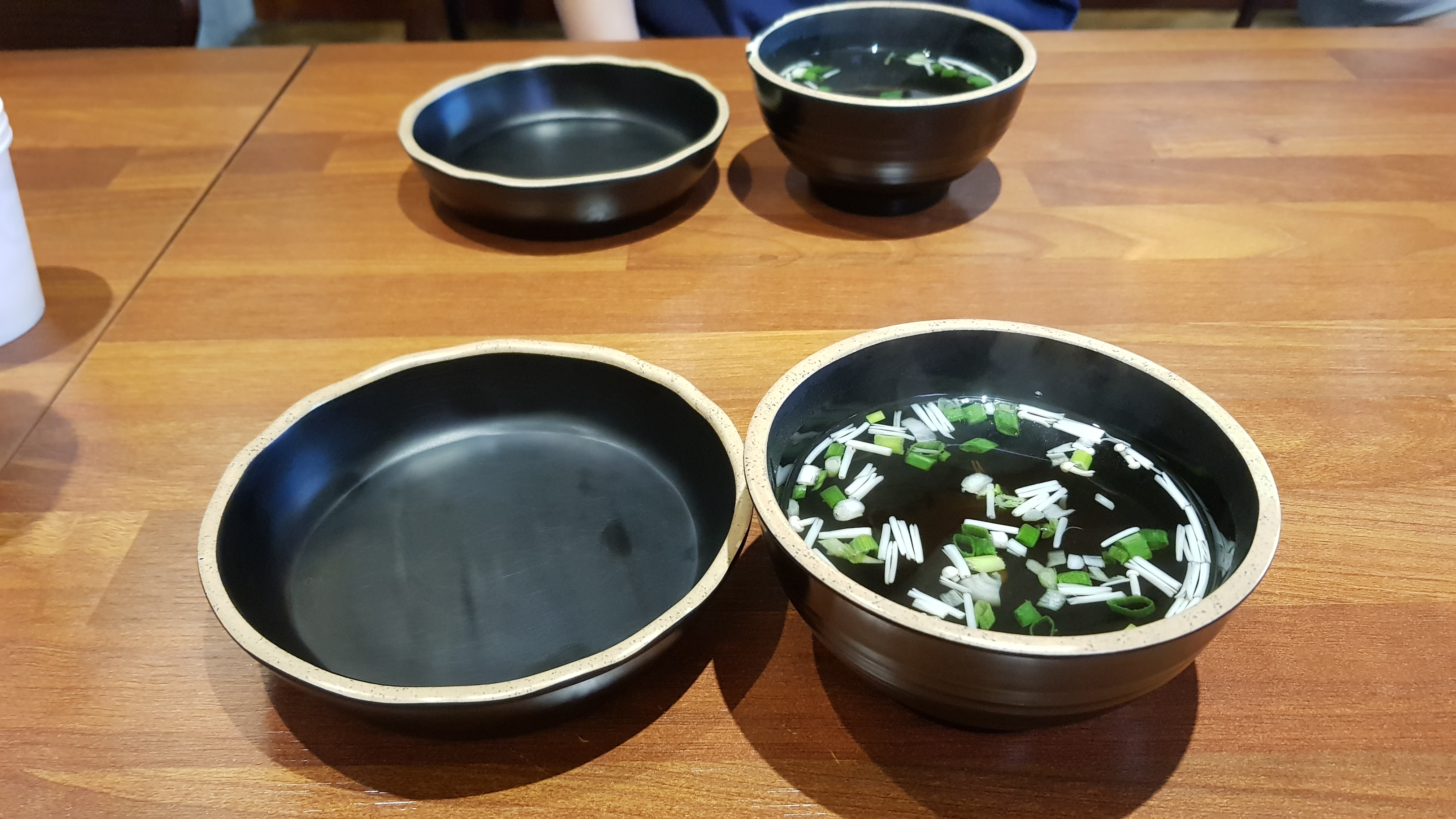 자리에 앉으면 이렇게 국물과 앞접시를 서빙해주시더군요.