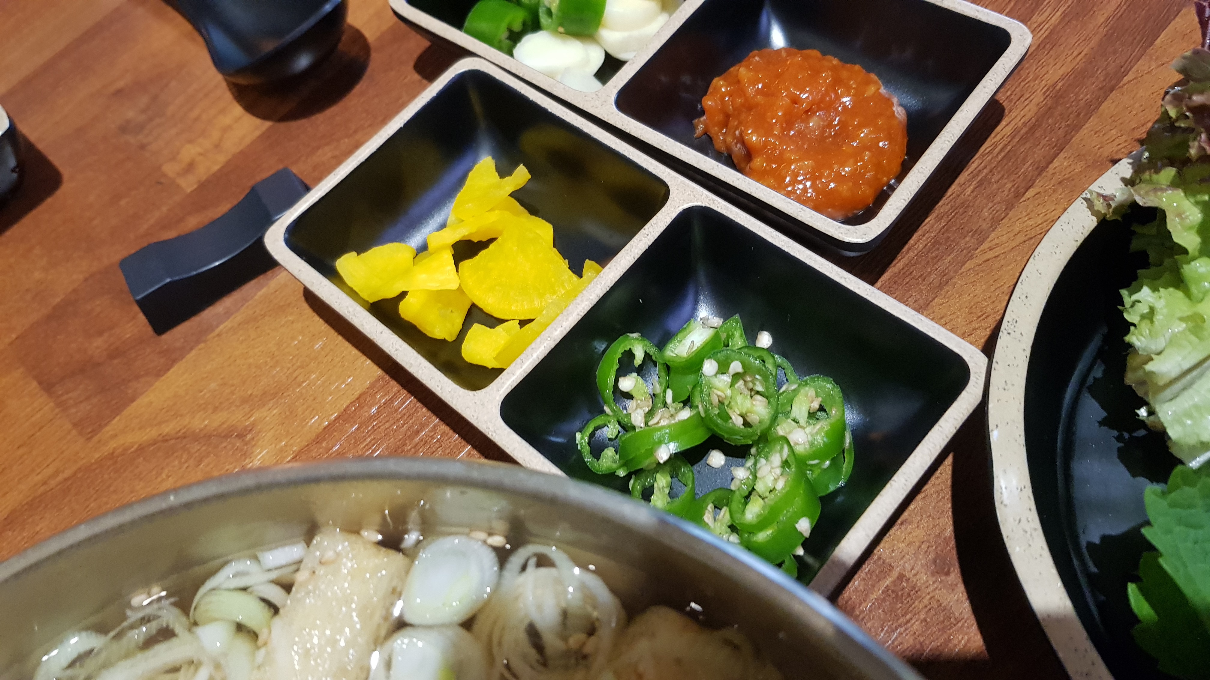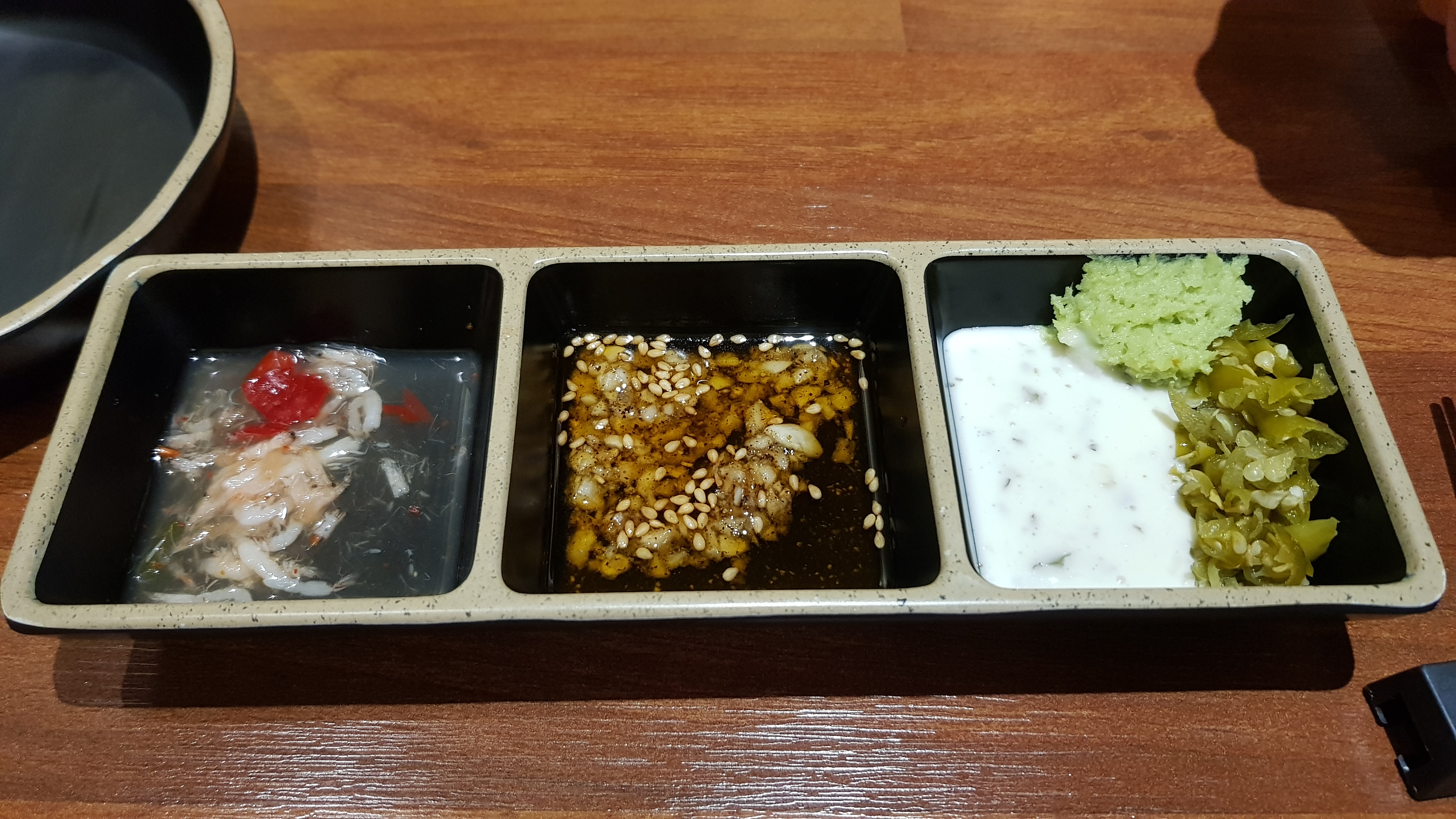 새우젓, 마늘기름장, 와사비마요까지 저는 이 소스 구성이 참 맘에 들었어요.