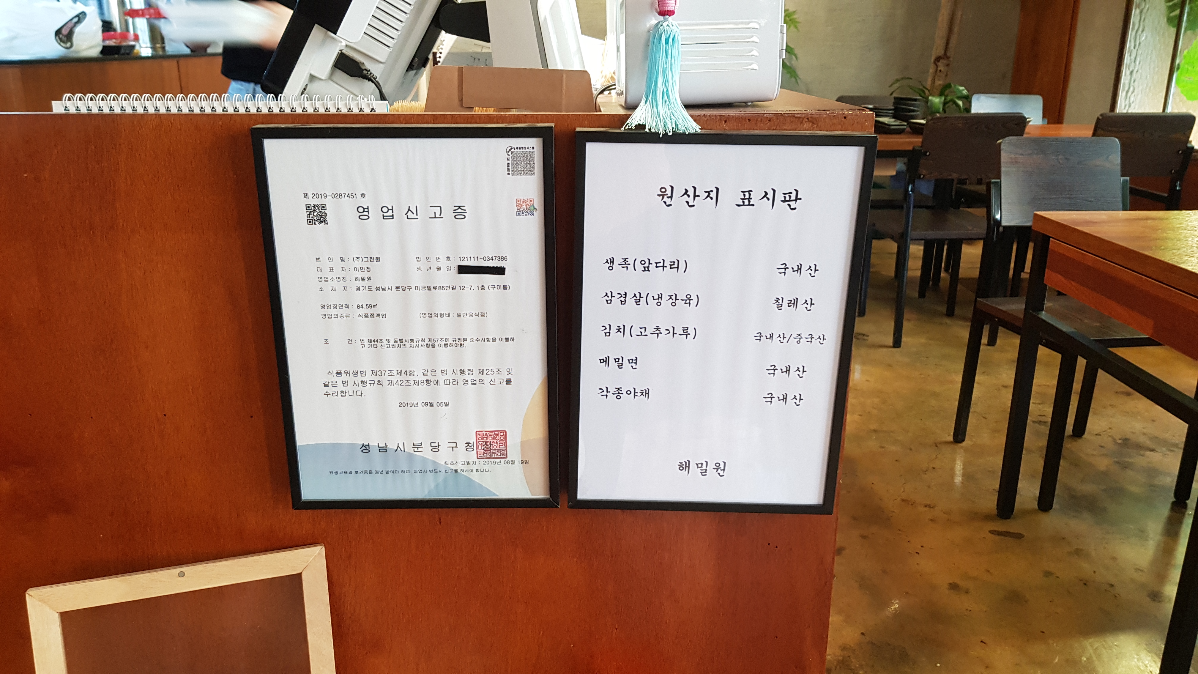 아이랑 배고파서 들어갔던지라 나오면서 봤는데 족발에 쓰는 생족은 국내산인데 삼겹살(냉장육)은 칠레산이라 아쉬웠어요.