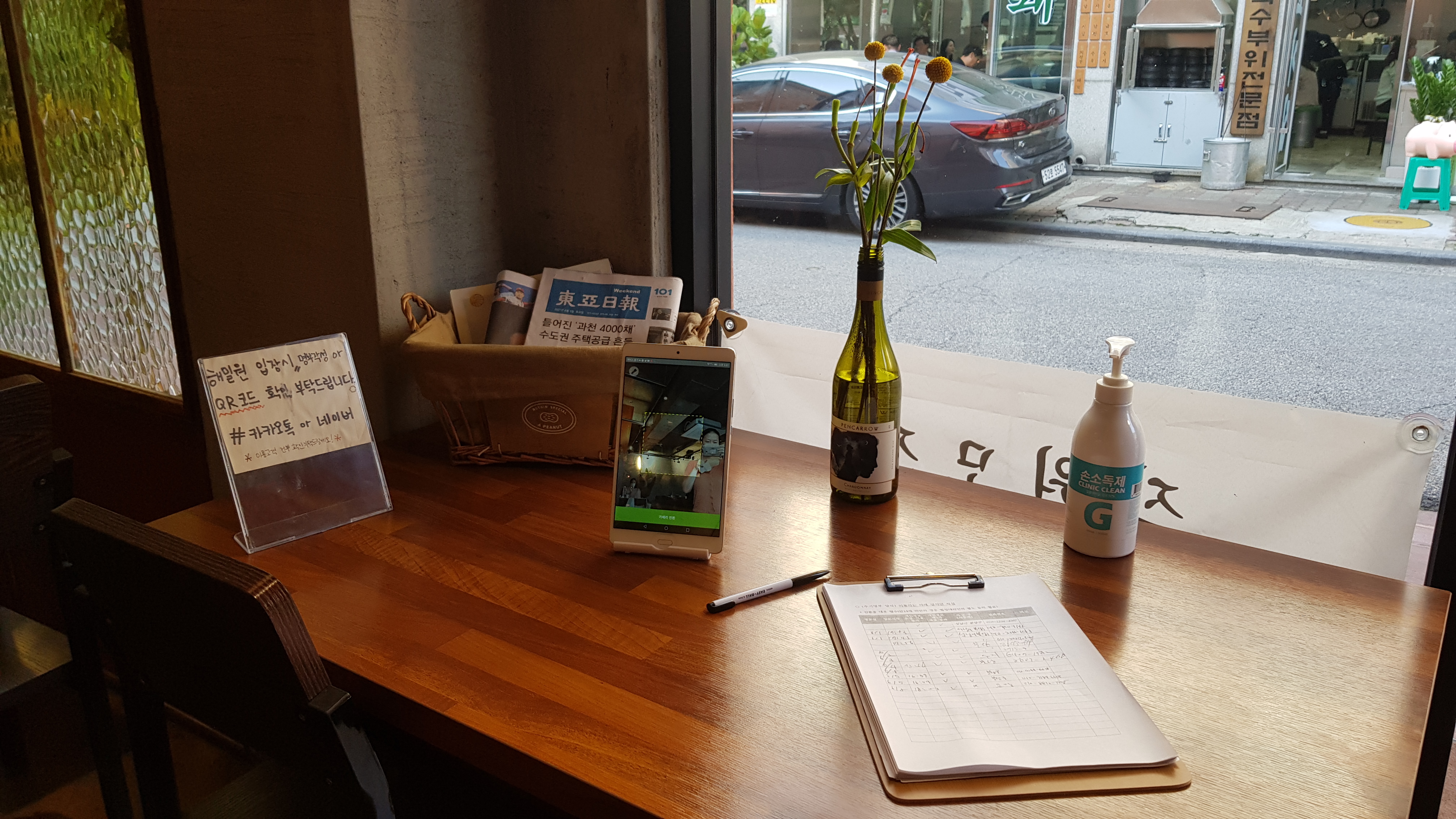 매장에 QR코드 인증 혹은 수기작성 하시고 착석하시면 되어요.