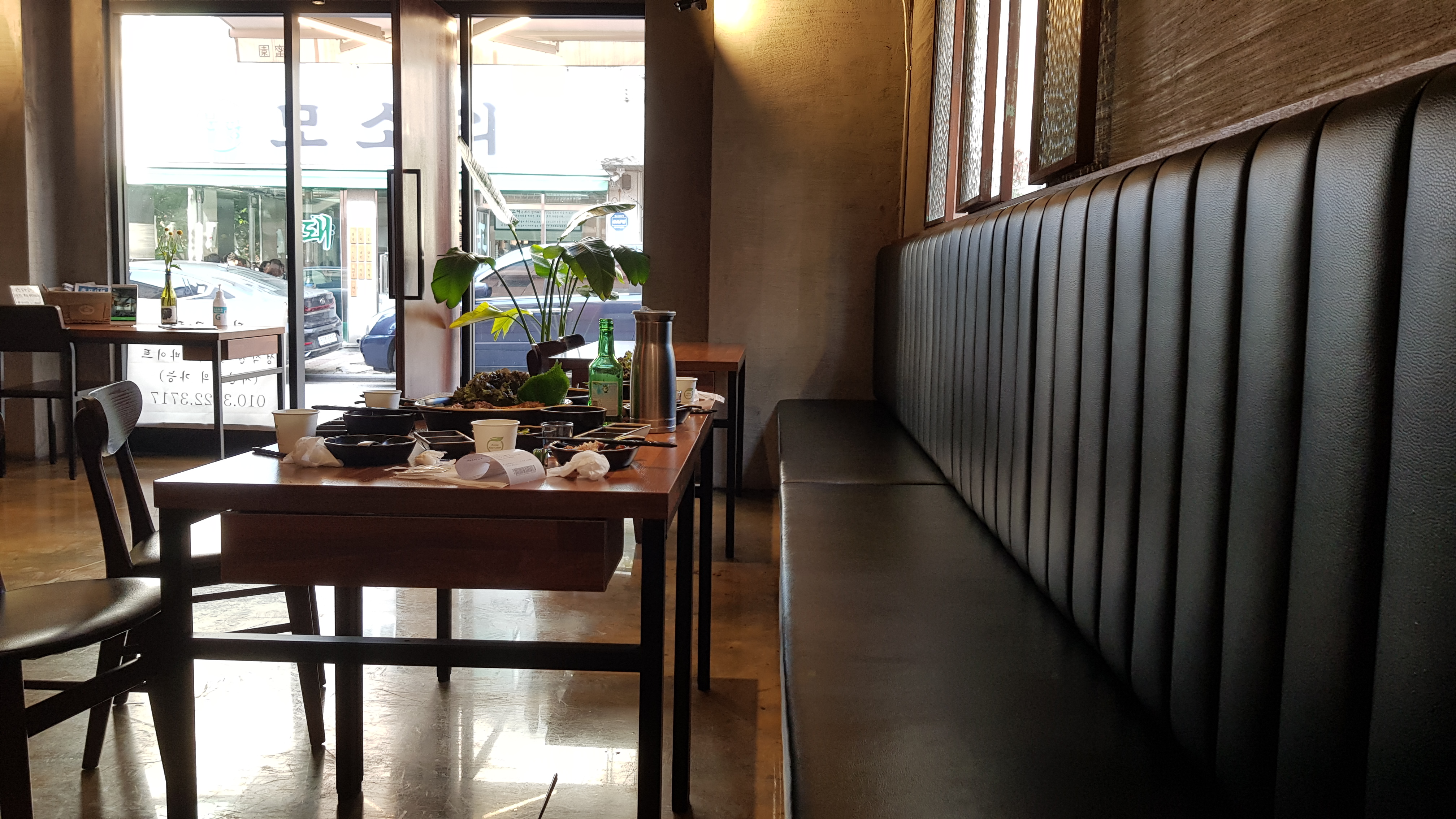 저희는 식사시간을 조금 비켜서 방문했어서 여유롭게 식사하게 되었는데 이렇게 벽에 붙어있는 소파의자 좌석도 있고
