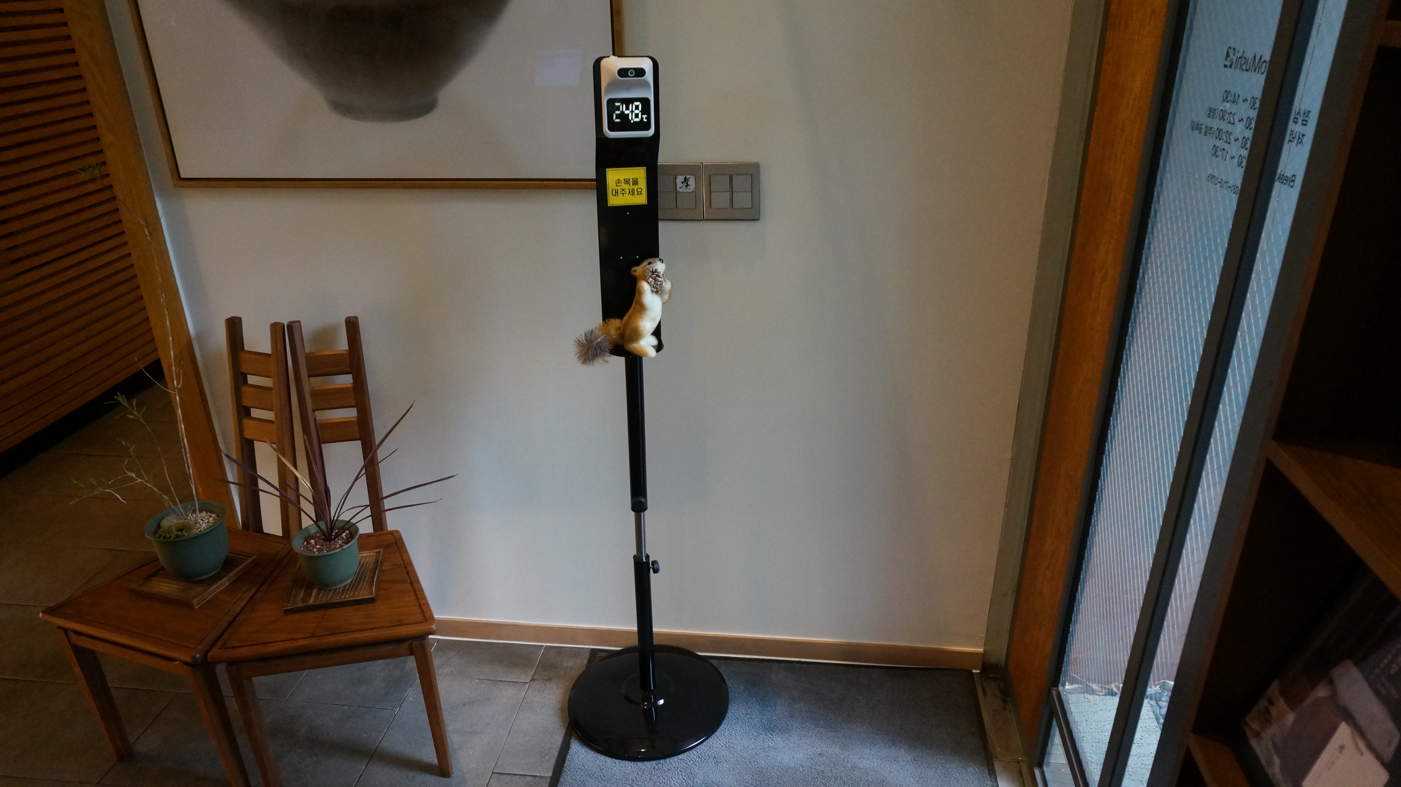 들어서자마자 발열체크와 QR체크인을 하도록 되어있었어요.