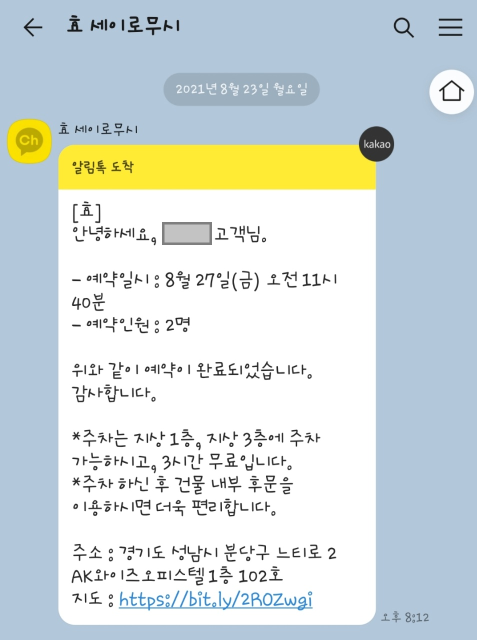다른 분들 예전 포스팅을 보니 네이버 예약도 되었던 것 같은데 지금은 전화로만 예약 가능한 것 같더라구요.