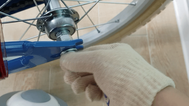 단단하게 조여줘야 아이가 자전거 탔을 때 보조바퀴가 움직이지 않아요.