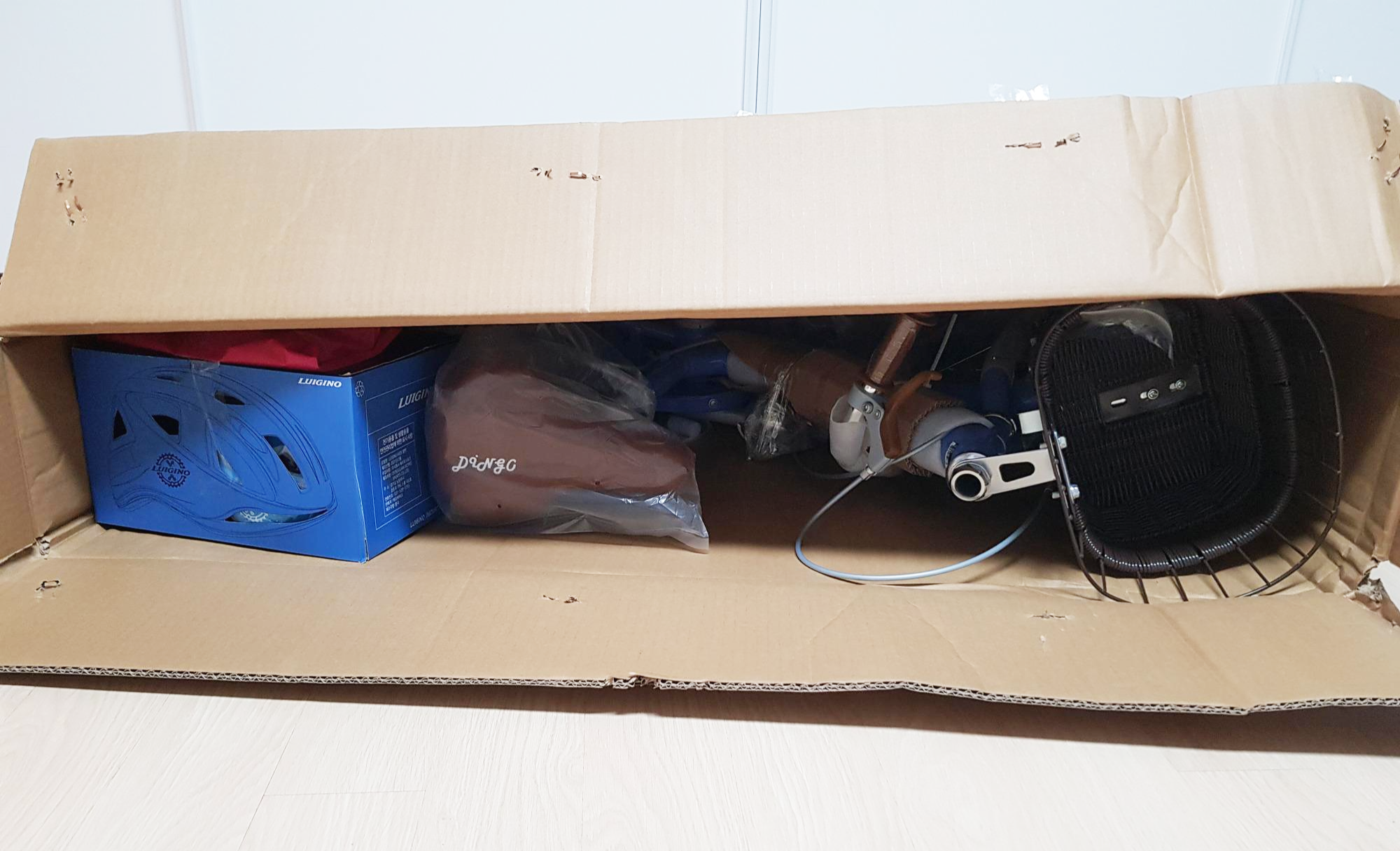 자전거를 꺼내려고 박스를 눕혀서 열었어요.