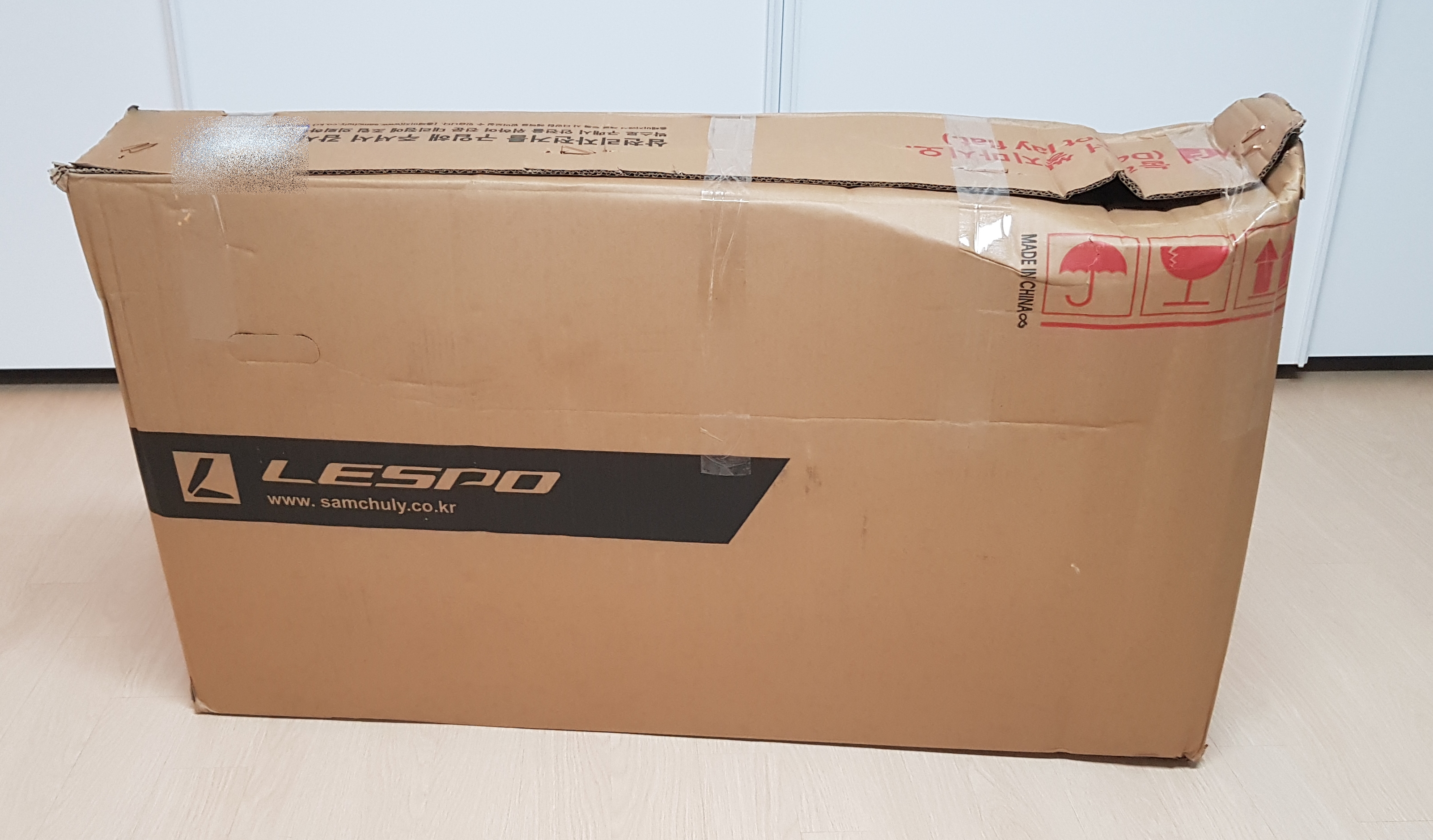 자전거를 꺼내려고 박스를 눕혀서 열었어요.