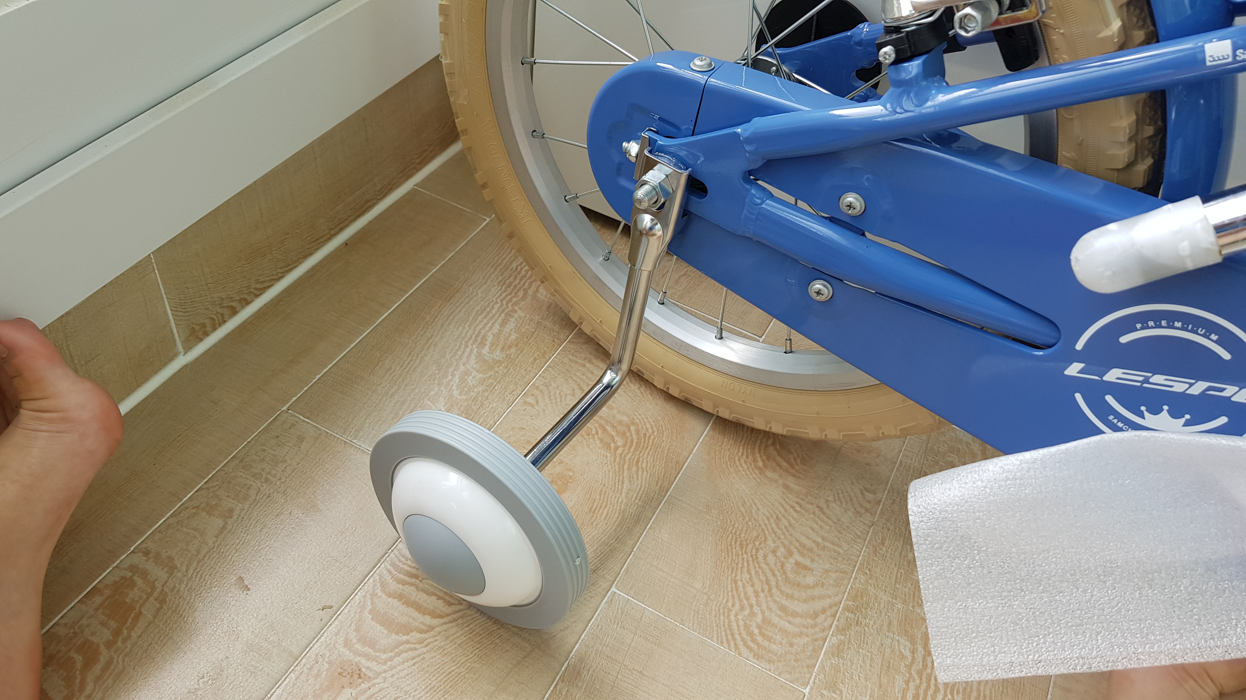 단단하게 조여줘야 아이가 자전거 탔을 때 보조바퀴가 움직이지 않아요.