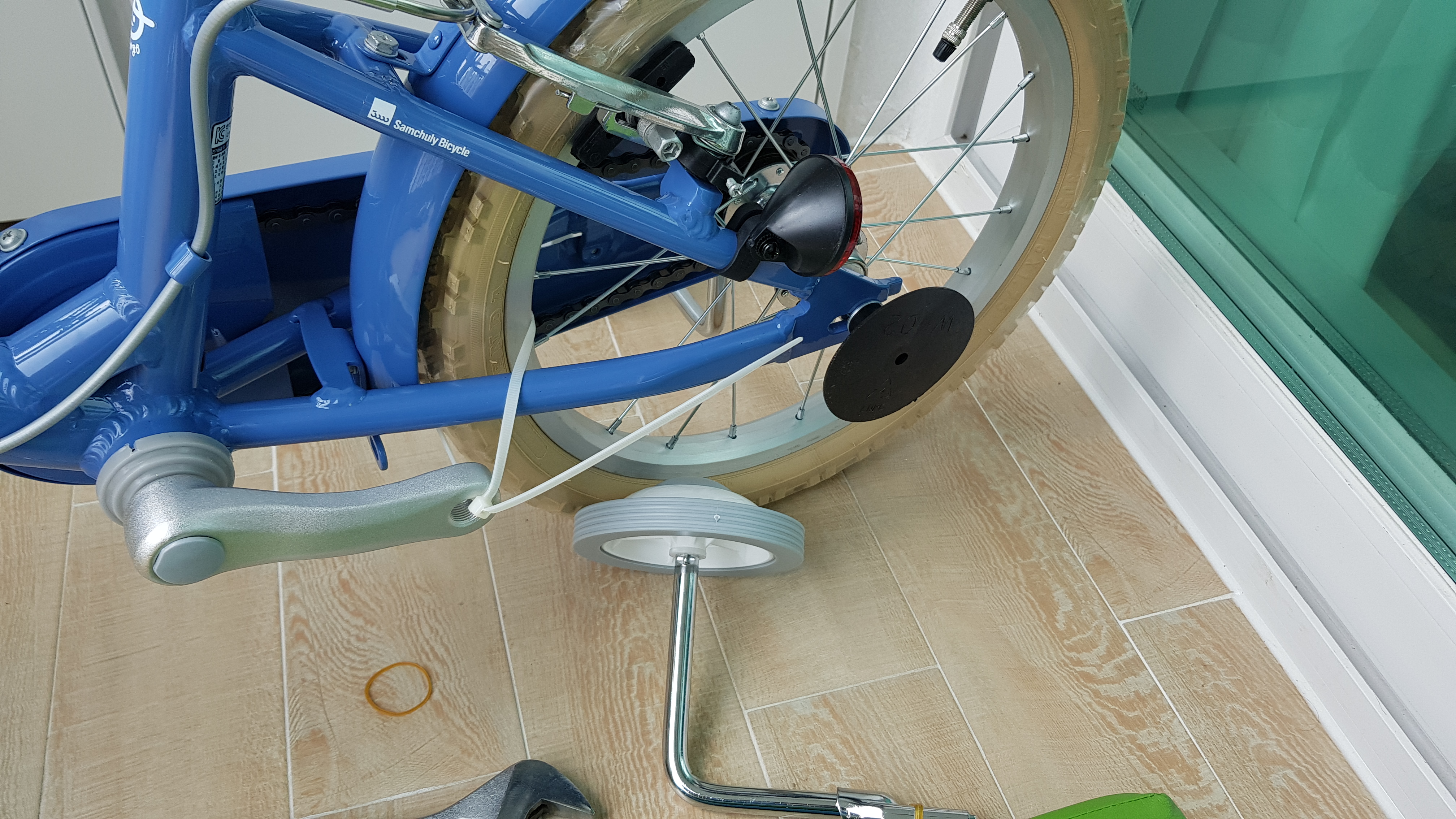 저는 80% 조립 상태로 주문했기 때문에 핸들과 보조바퀴, 차임벨을 다는 정도만 하면 되었어요.