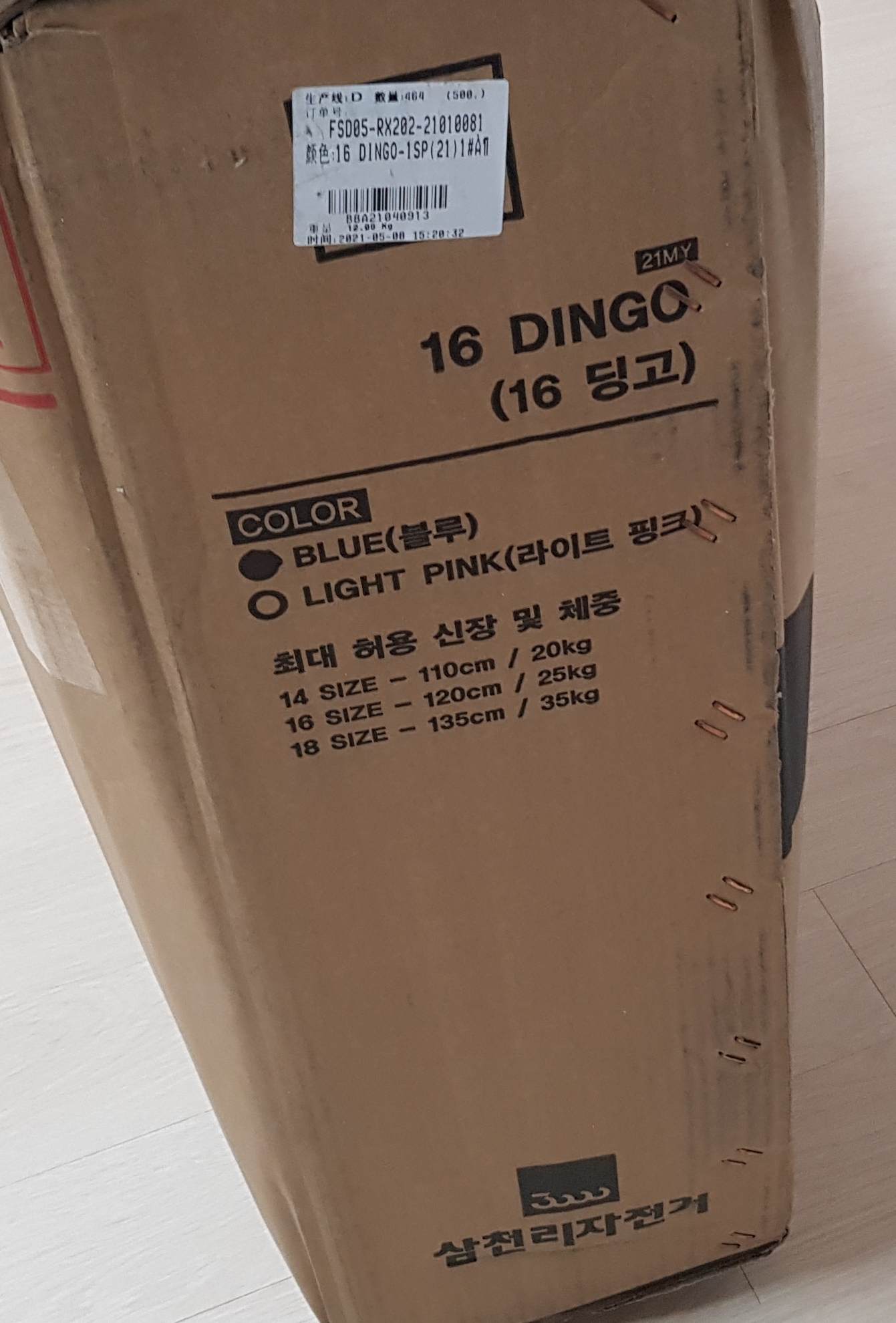 동글이는 키가 109cm정도 되어서 16inch 자전거를 구매했는데요, 나이에 상관없이 신장 110 보다 작은 어린이는 16inch 가 좋고, 130이상크면 20inch로 바꿔주면 좋다고 하더라구요.