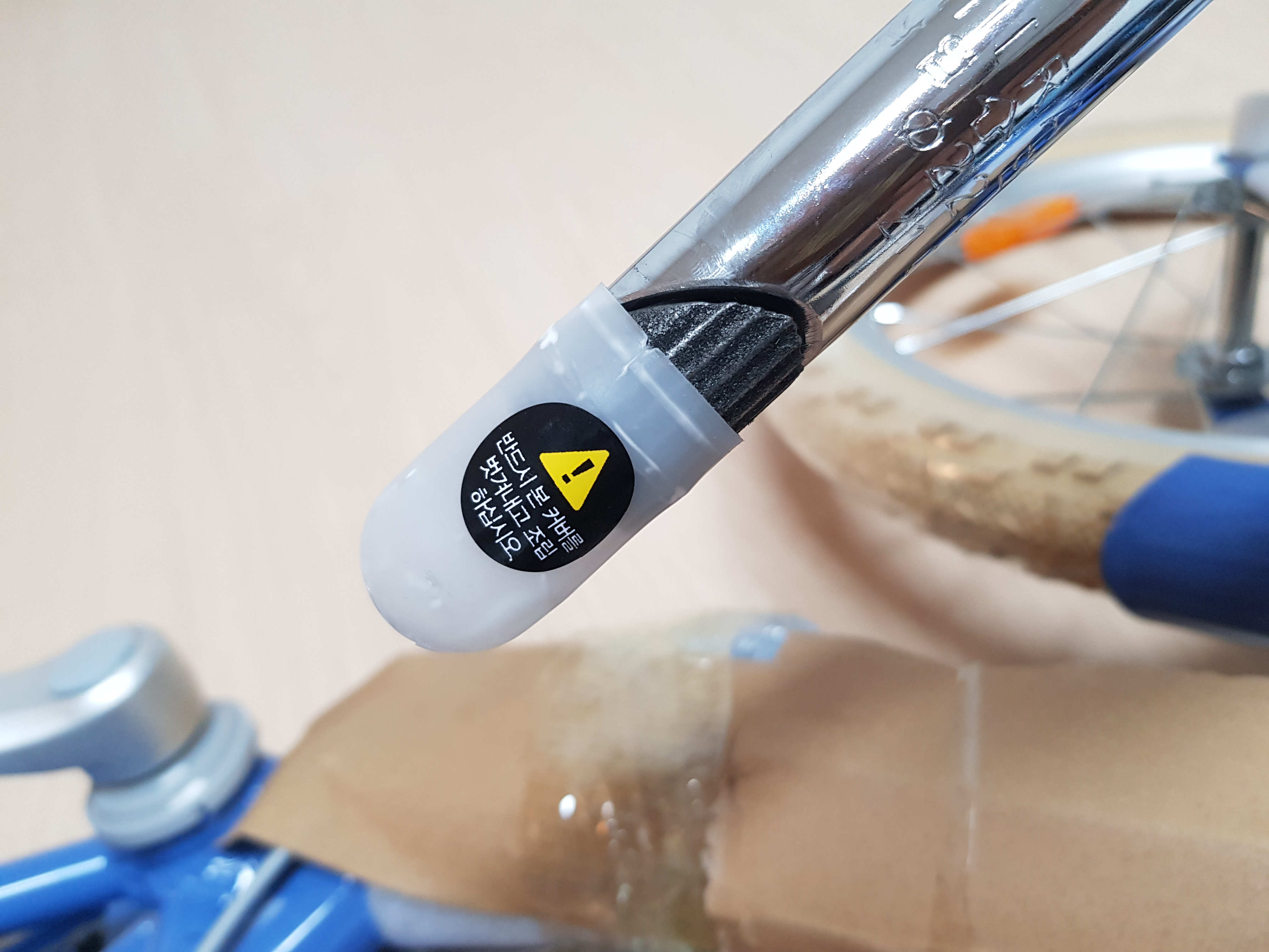 핸들이 고정되었으면 고무마개로 막아줘요. 저 부속도 자전거에 포함되어있었어요.
