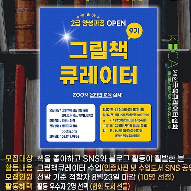 사단법인 한국북큐레이터 협회 공식홈페이지에 가시면 그림책큐레이터 외에 다양한 강좌들이 마련되어있어 책을 좋아하시는 분들이 가서 둘러보시고 마음에 드시는 공부 시작해보셔도 좋을 것 같아요.