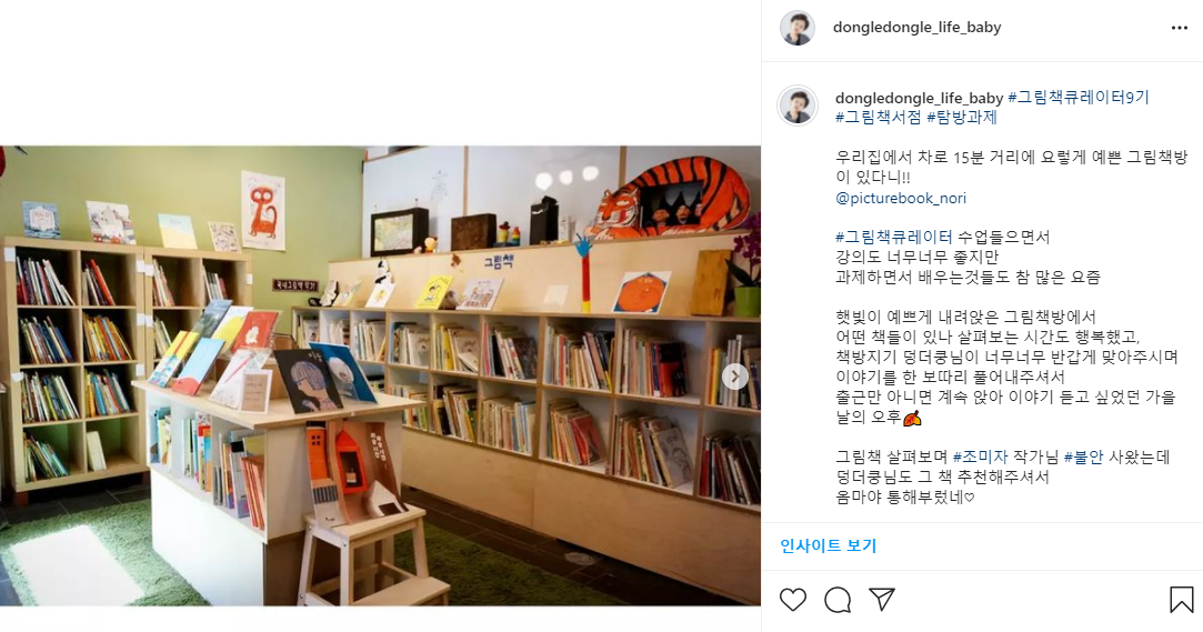 탐방과제 덕분에 집 근처에 좋은 그림책서점도 알게 되었거든요.