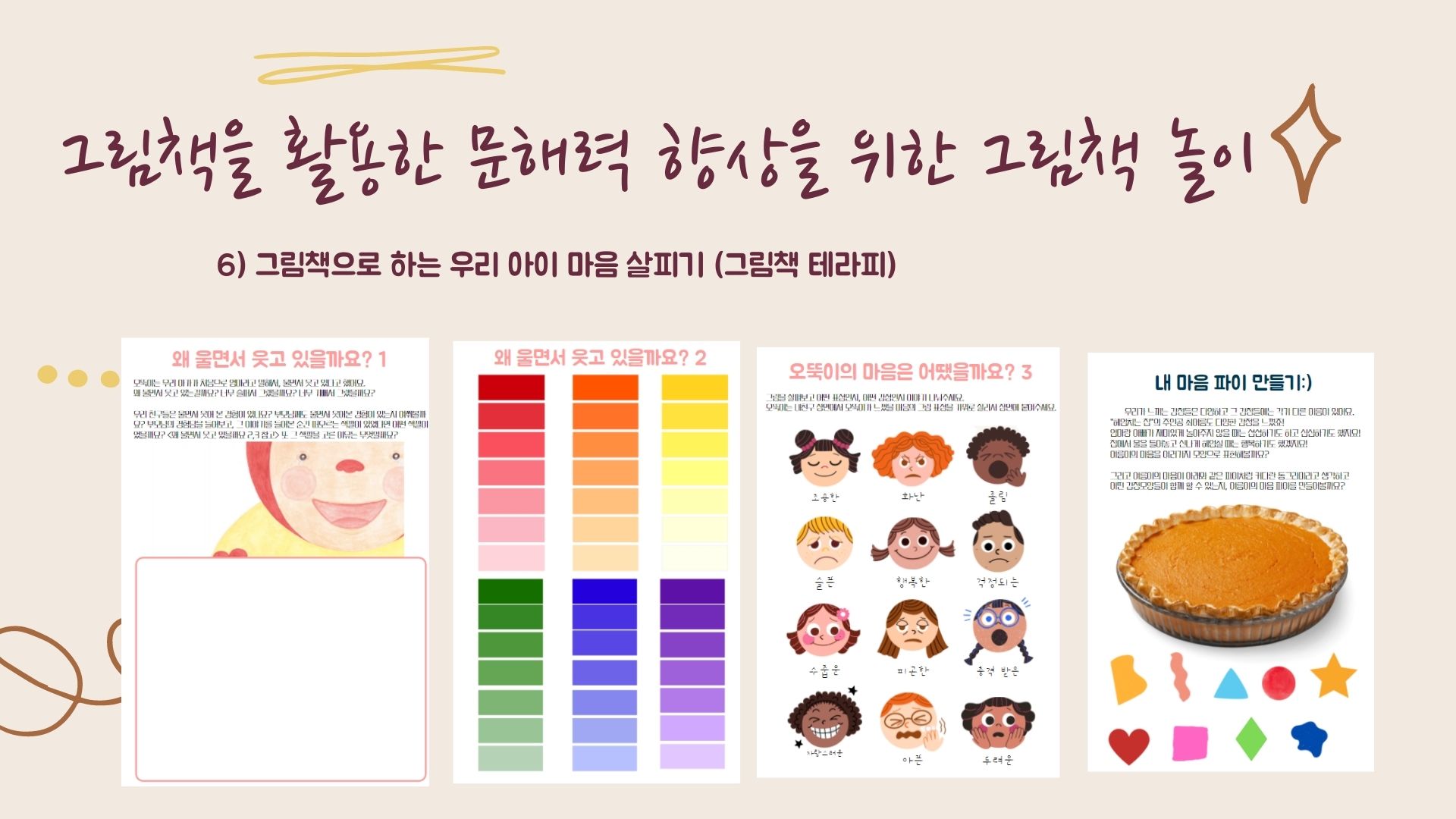 그림책테라피와 책놀이, 말놀이를 담아 6주 과정을 준비했답니다.