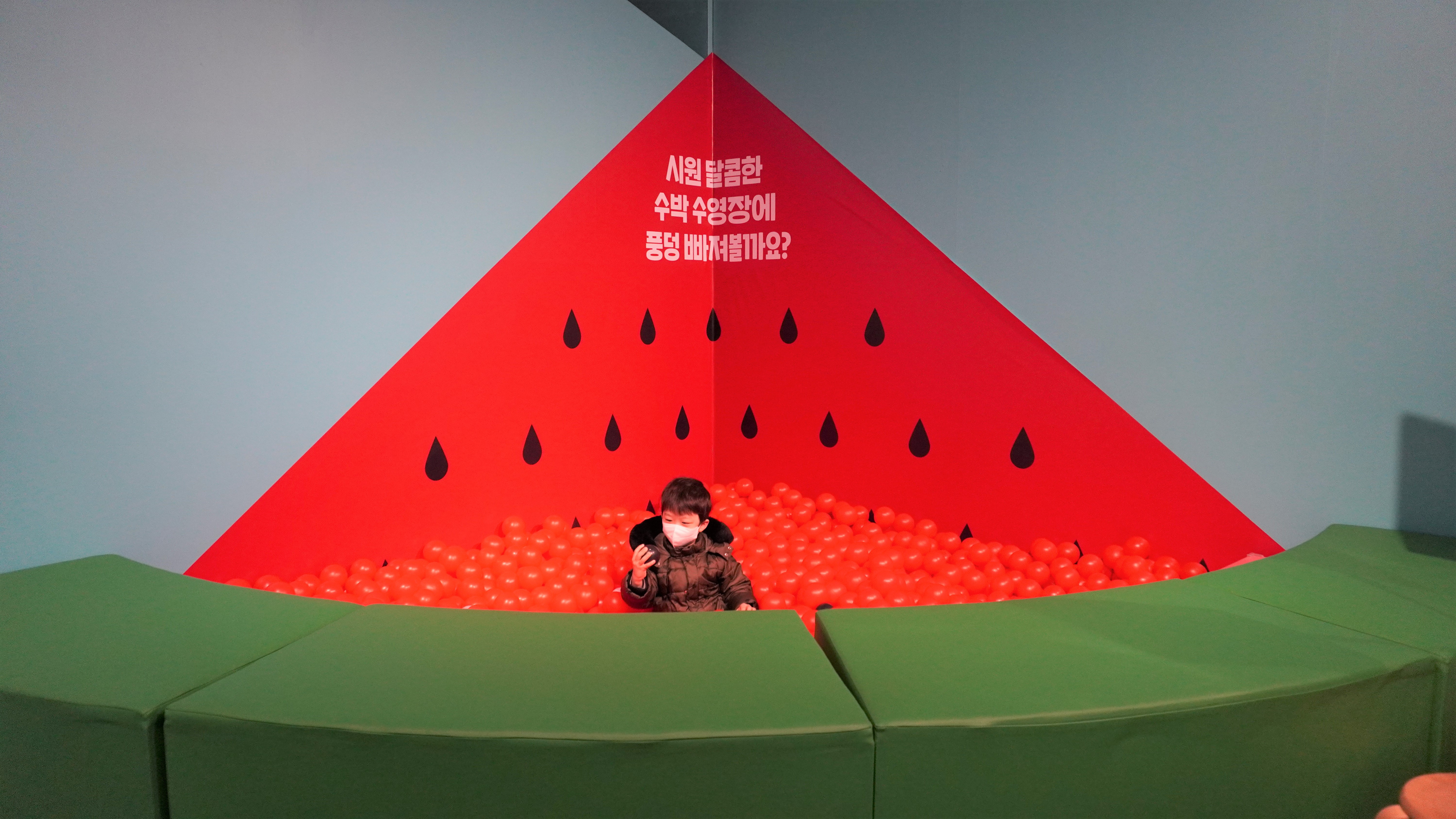 집에서 여름이면 수박으로 수영장을 만들어 놀이했었는데 이번 전시에는 볼풀장으로 만날 수 있어 반가웠어요.