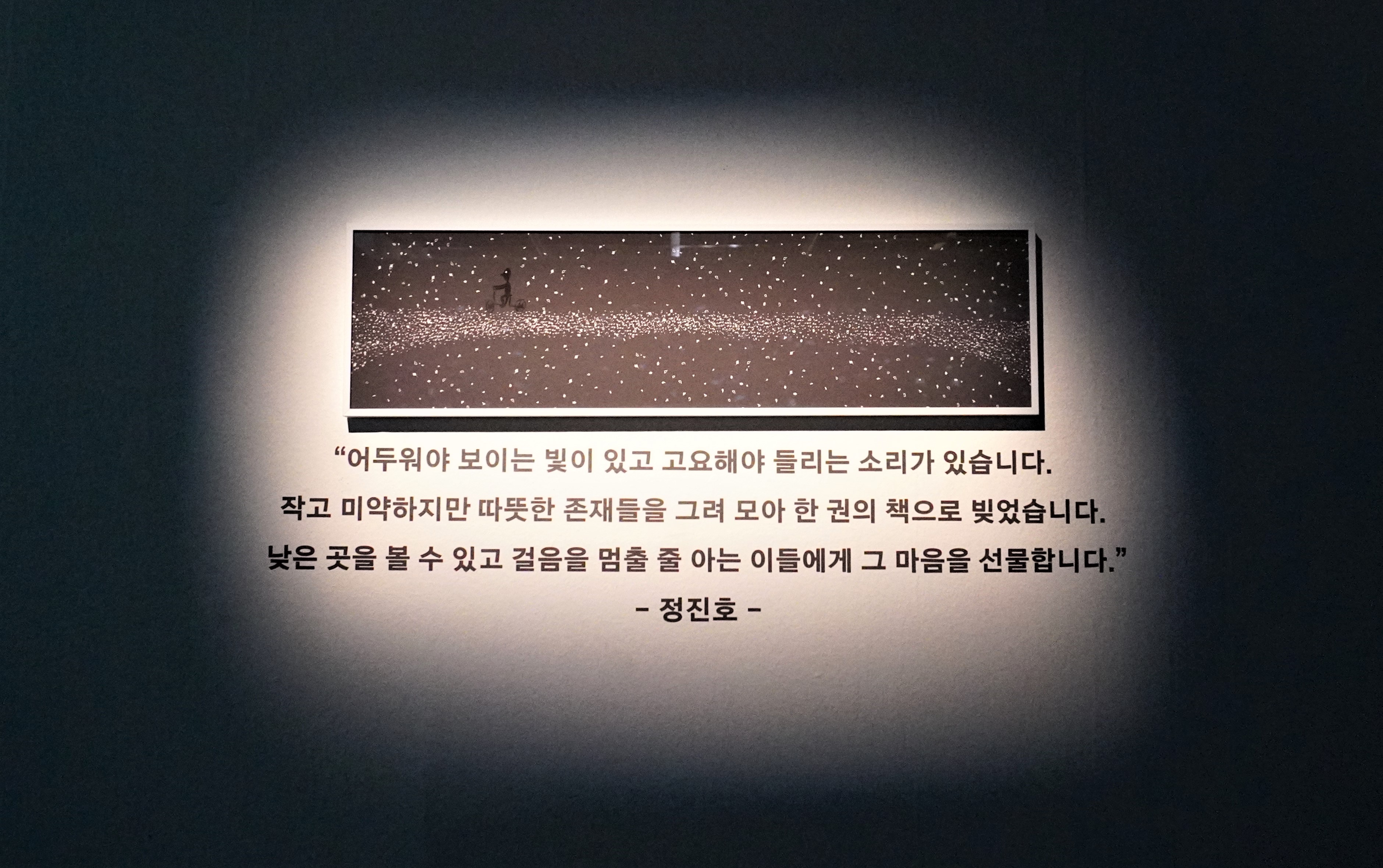 어두워야 보이는 빛이 있고 고요해야 들리는 소리가 있습니다. 작고 미약하지만 따뜻한 존재들을 그려 모아 한 권의 책으로 빚었습니다. 낮은 곳을 볼 수 있고 걸음을 멈출 줄 아는 이들에게 그 마음을 선물합니다. -정진호-