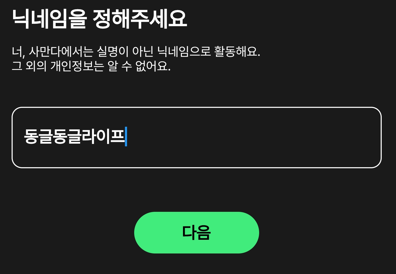 이메일 인증을 거치면 닉네임 설정 및 세부 내용을 설정하도록 되어있었어요.