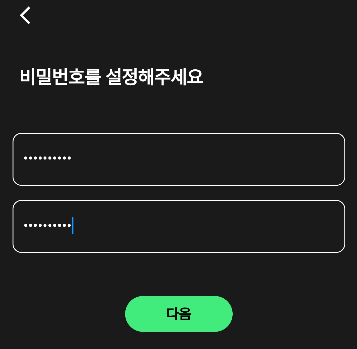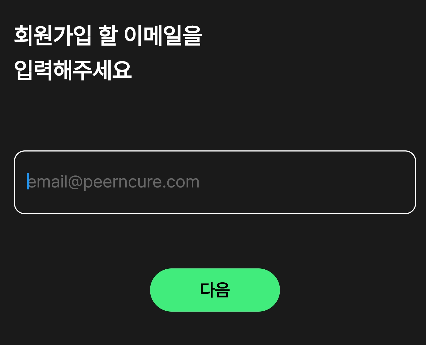 이메일로 계속하기 버튼을 누르면, 회원가입 할 이메일과 비밀번호 설정 후