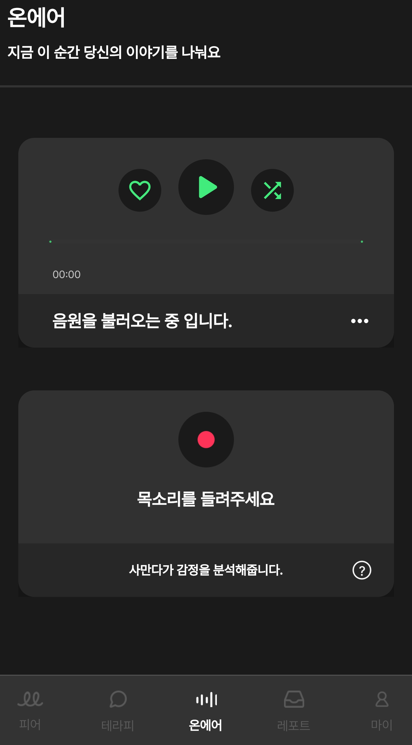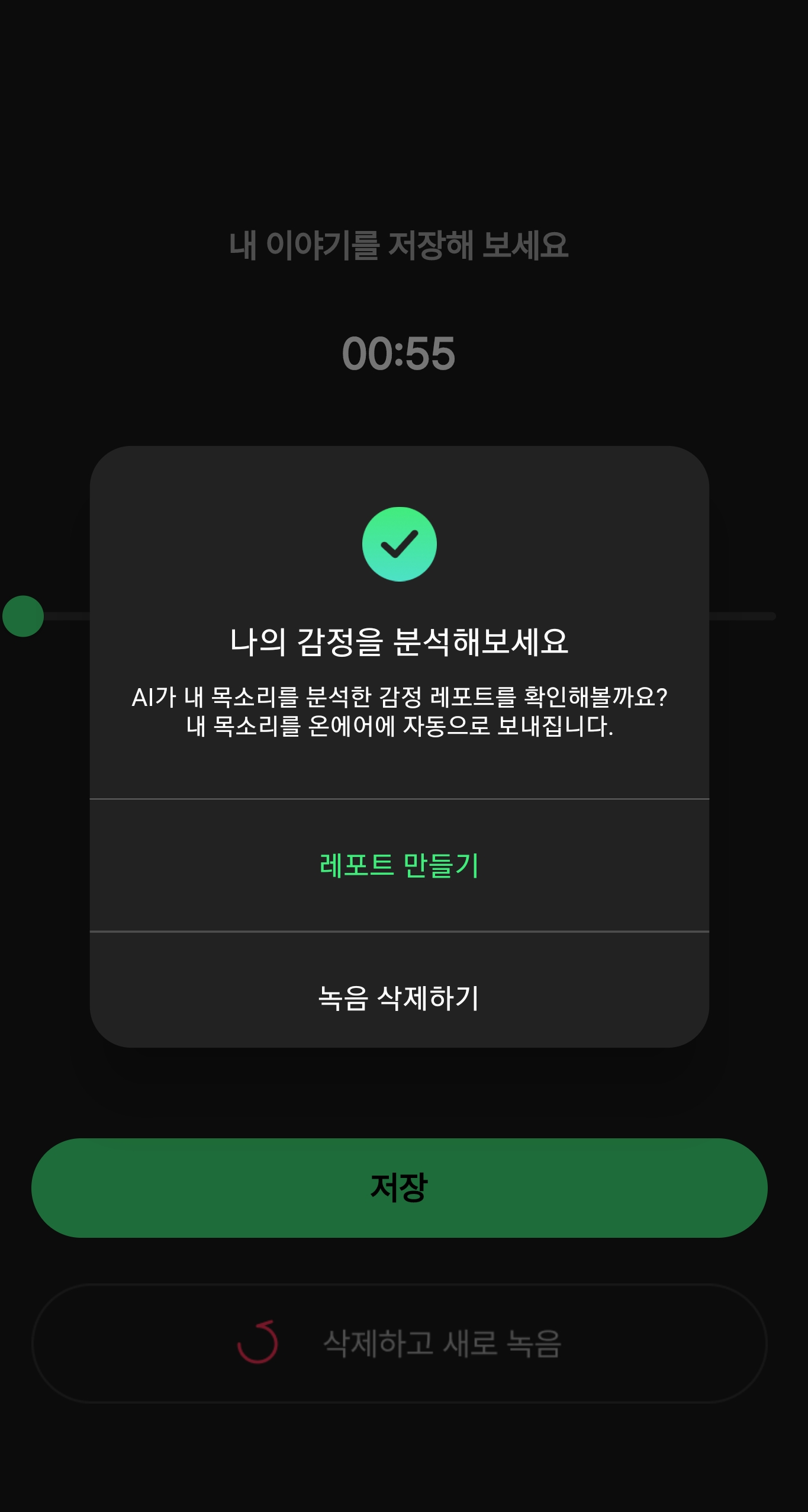 <너, 사만다>의 온 에어 기능을 이용하여 목소리를 녹음하면 AI- 감정레포트로 감정상태를 분석해줘요.