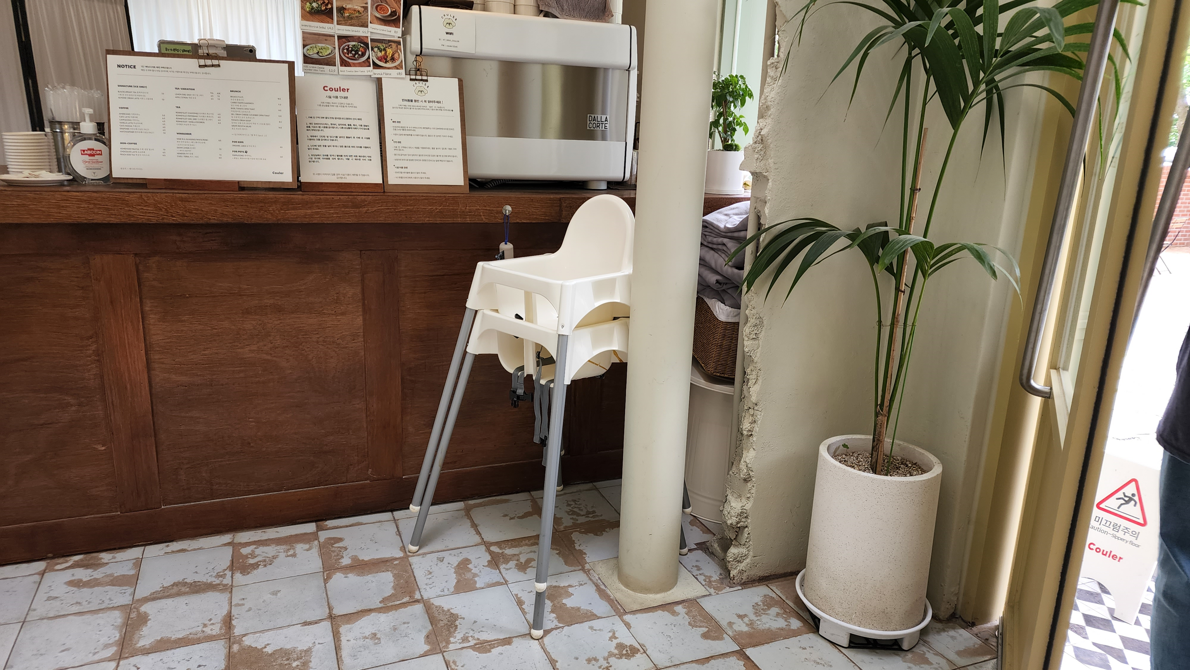 한켠에 서비스코너가 있고, 아기의자도 비치되어있어서 영유아 동반 손님에 대한 배려가 느껴졌어요.