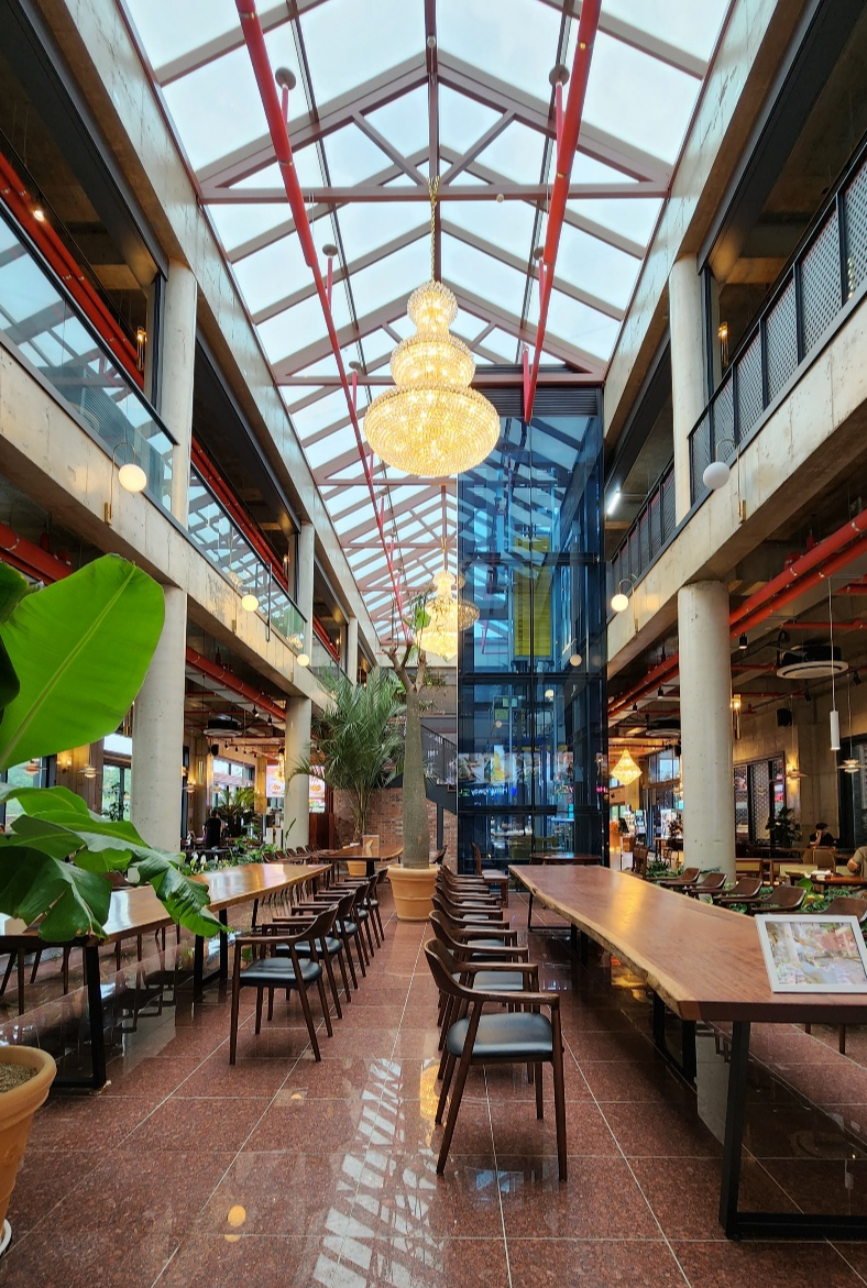 채광이 잘 되는 곳에 대형 샹들리에가 걸려있으니 더 멋진 느낌이죠?