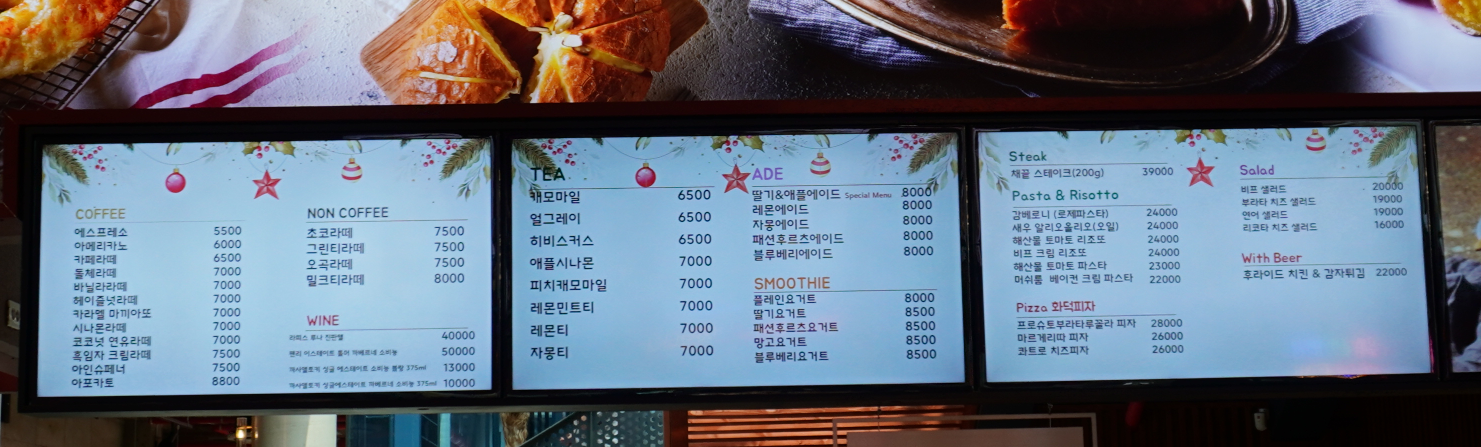아메리카노가 6천원부터 시작이고 다이닝 메뉴는 2만원대라 저렴하지는 않은 점 참고하시면 좋을 것 같아요.