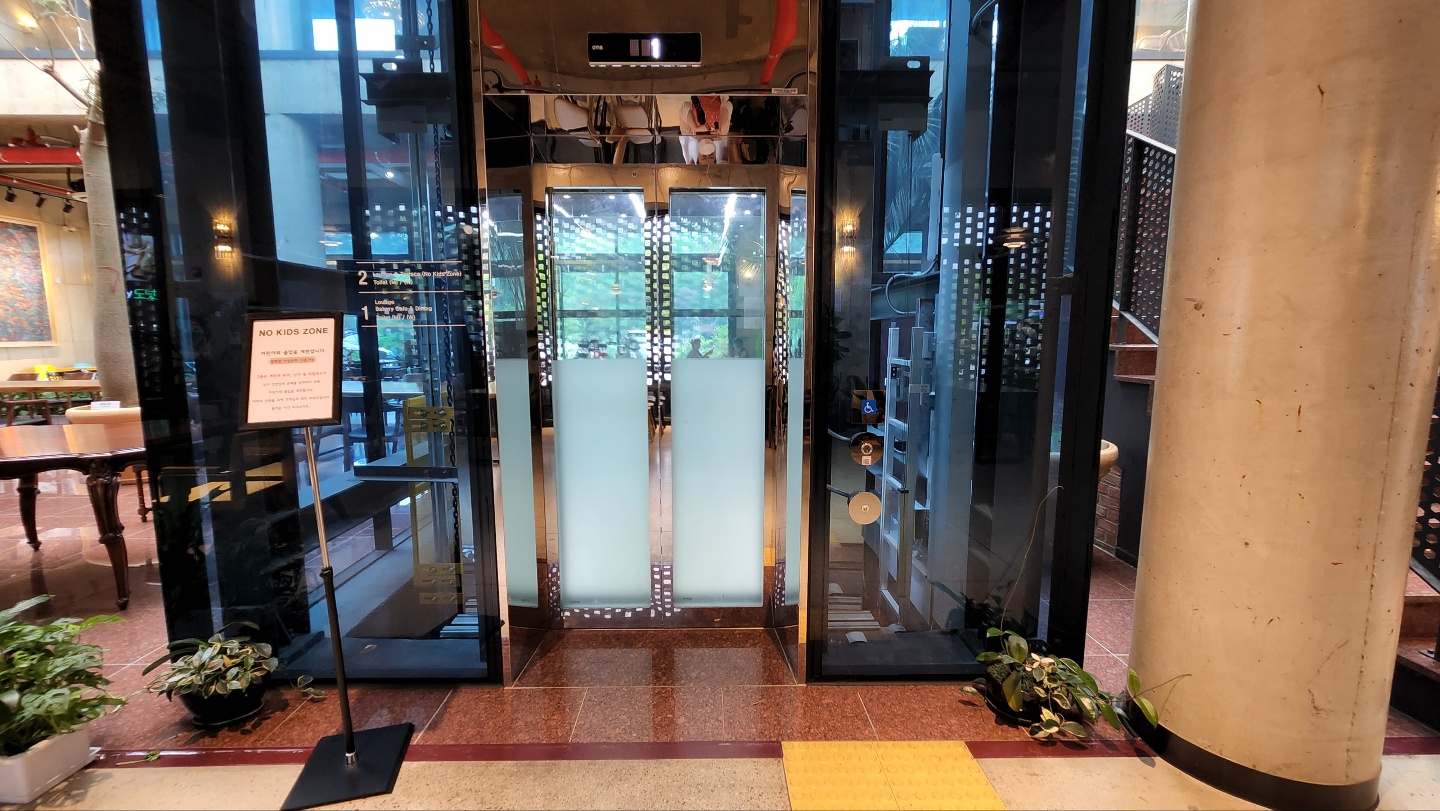 2층은 계단이나 엘리베이터로 올라갈 수 있는데 노키즈존 이예요.