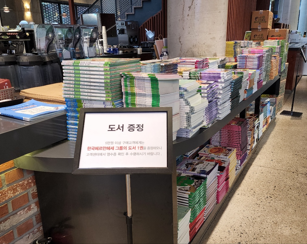 5만원 이상 구매고객은 한국헤르만헤세 그룹 도서 1권을 증정 받을 수 있어 카운터에서 영수증 확인 후 수령 가능한데요, 저는 학습만화 한권 골라왔어요.