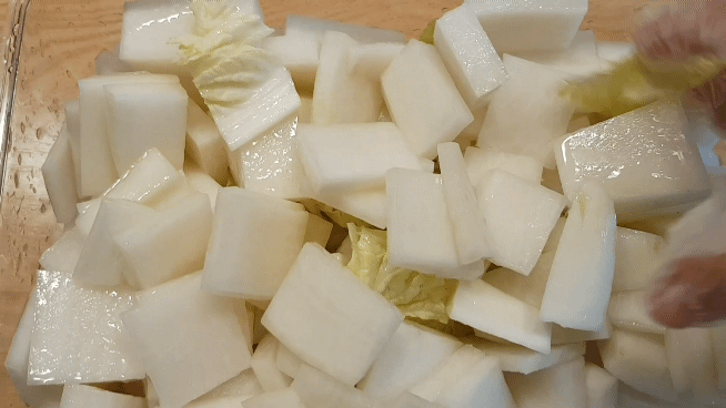 알배추와 무, 그리고 양념이 잘 버무려졌다면 1시간을 재워줍니다.