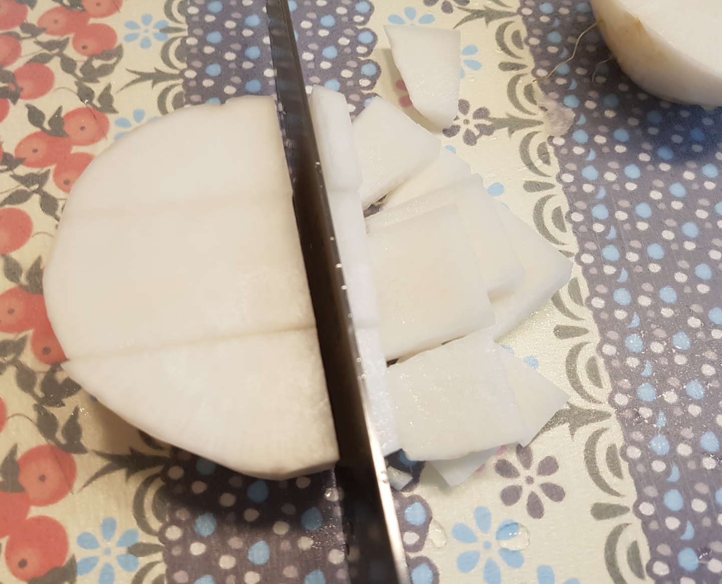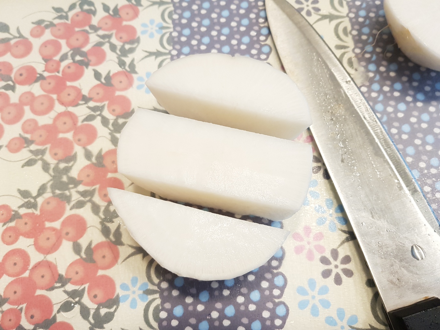 무 크기는 대충 이어도 그람수는 맞췄어요.