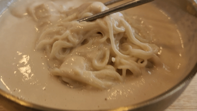 젓가락질 하면서 찍을라니 좀 어설프긴 한데요, 면발 굵기 가늠해보시라고 gif도 넣어봤어요.
