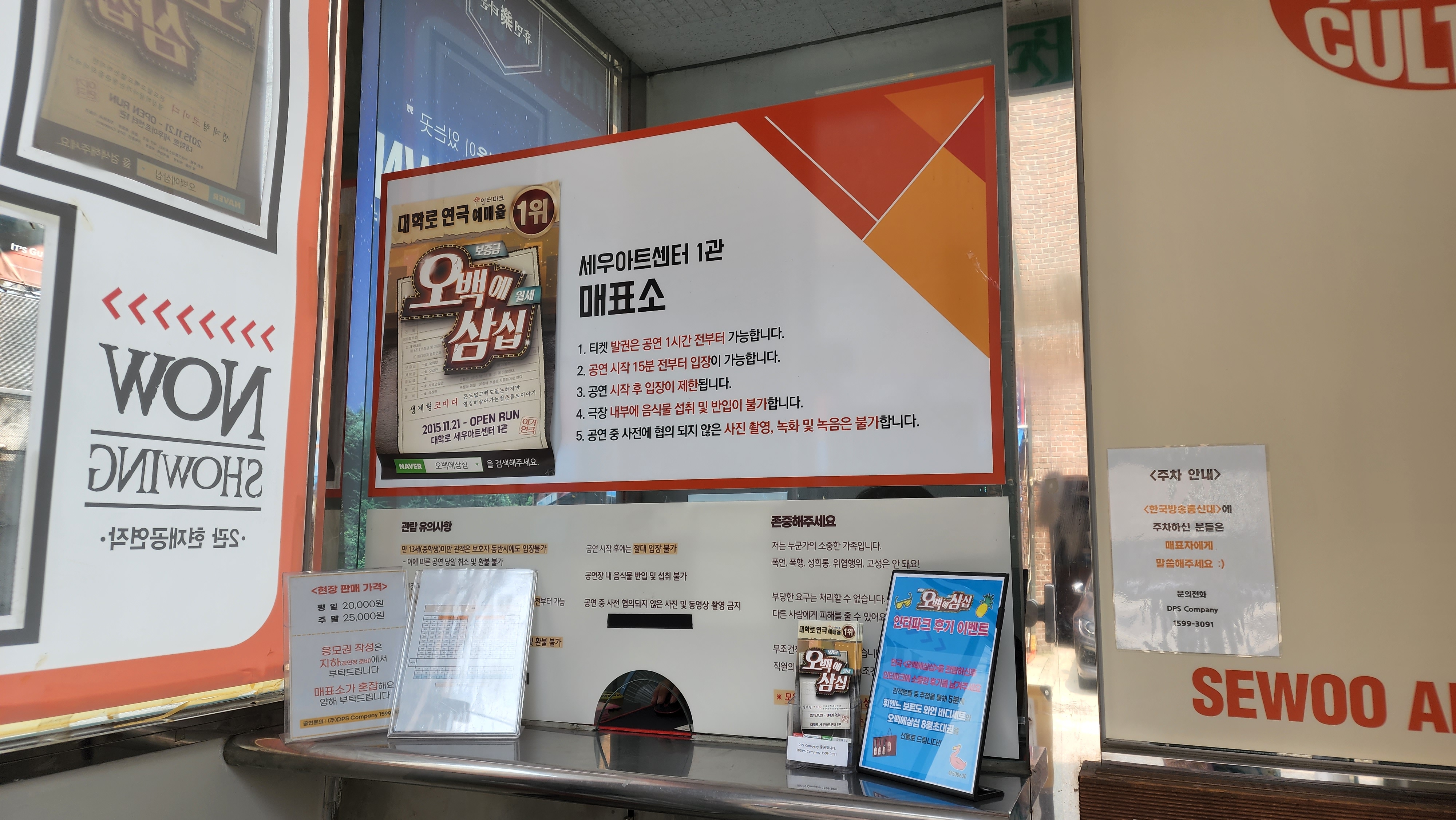 대학로 초입에 연극공연 티켓 판매 하시는 분들을 통해서 티켓을 구매하시는 방법도 있어요.