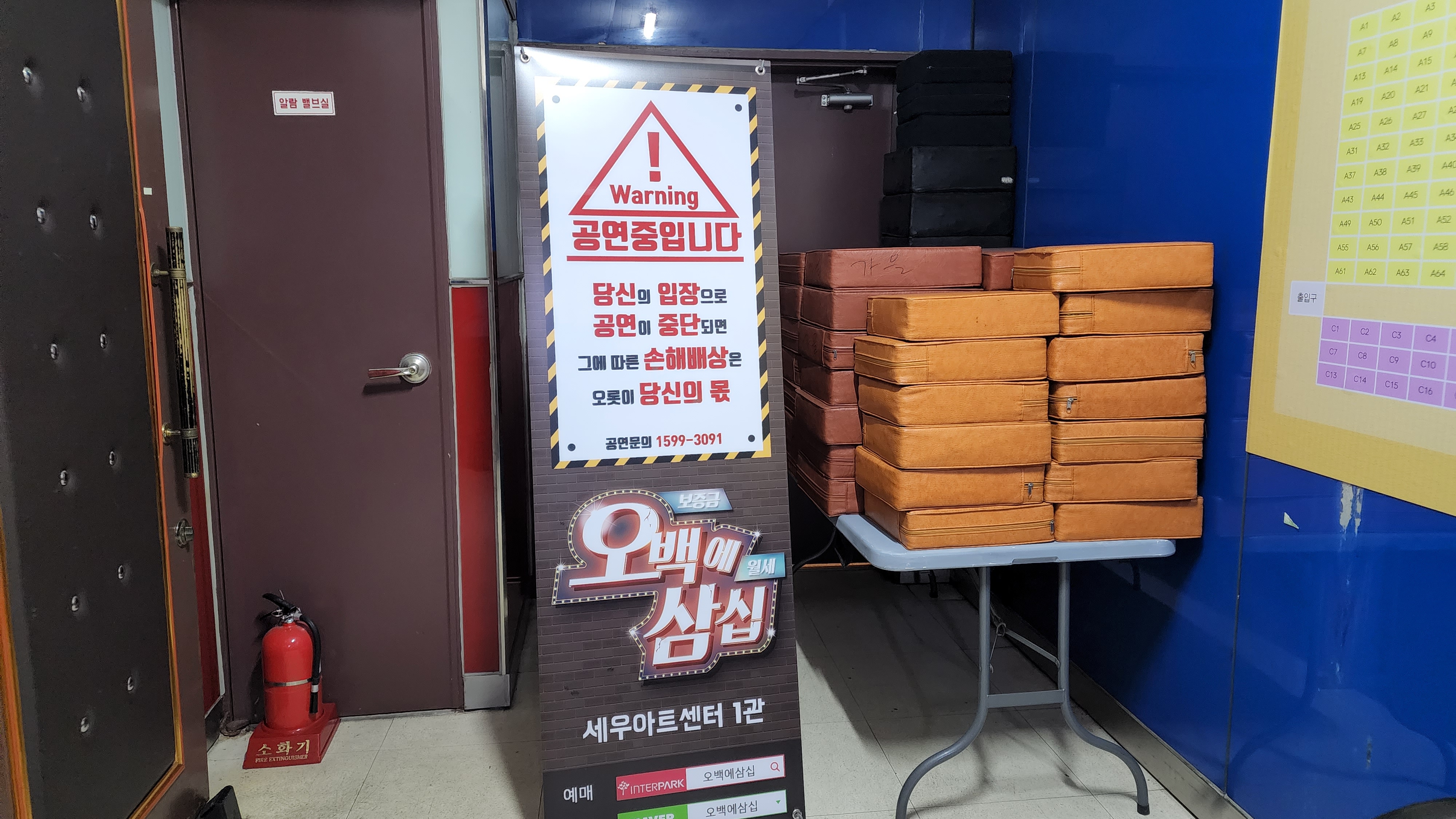 공연장은 지하 2층에 위치해 있고, 공연 시작전에 앉아서 기다릴 수 있도록 의자들이 비치되어있었어요.