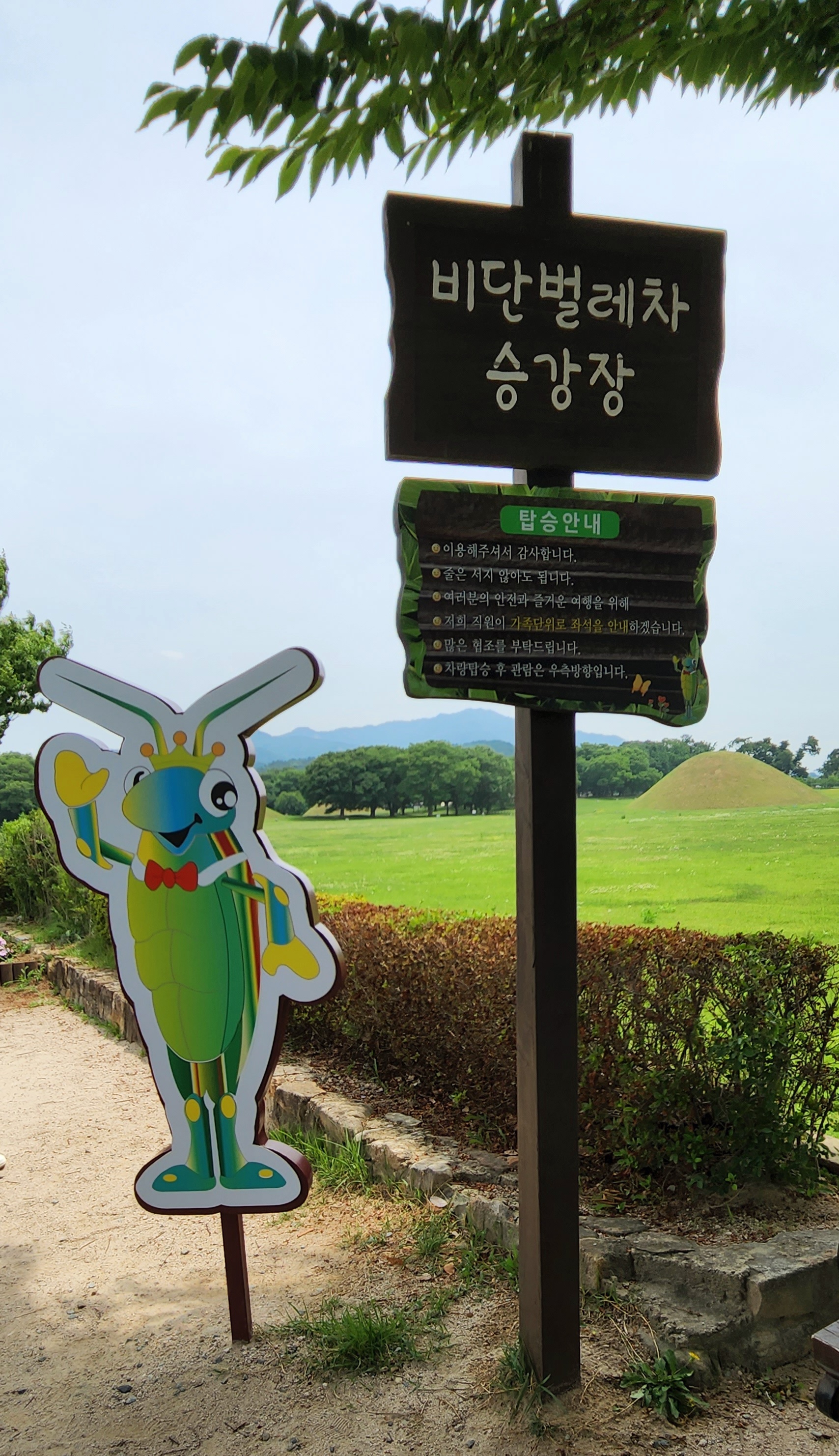 비단벌레 전기차를 타며 좋았던 점은 전기자동차를 타고 유적지에 대한 설명을 들으며 구경할 수 있다는 점과 가족 단위로 탑승시켜주는 점 이었어요.