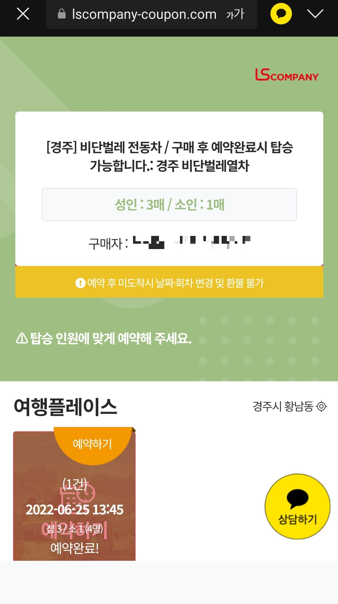 제일 더울 것 같은 13:45에 예약했지만 탈 수 있다는게 어디냐 하며 예약 완료 했네요.