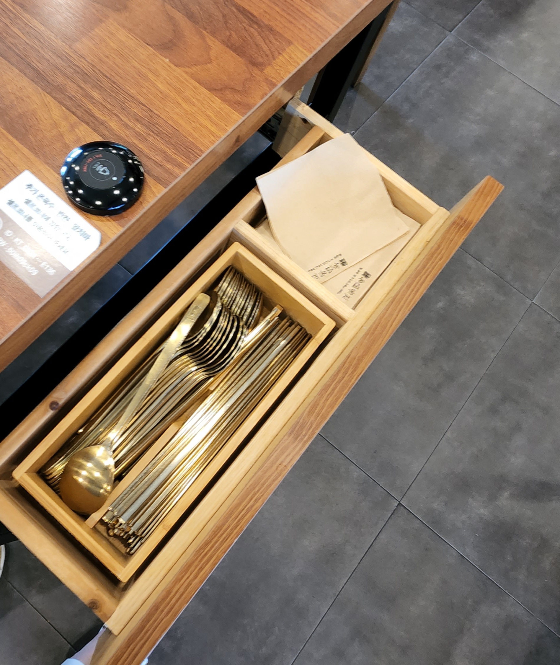 물도 가져다 주셨고, 서랍을 열면 식기와 냅킨이 들어있더군요.