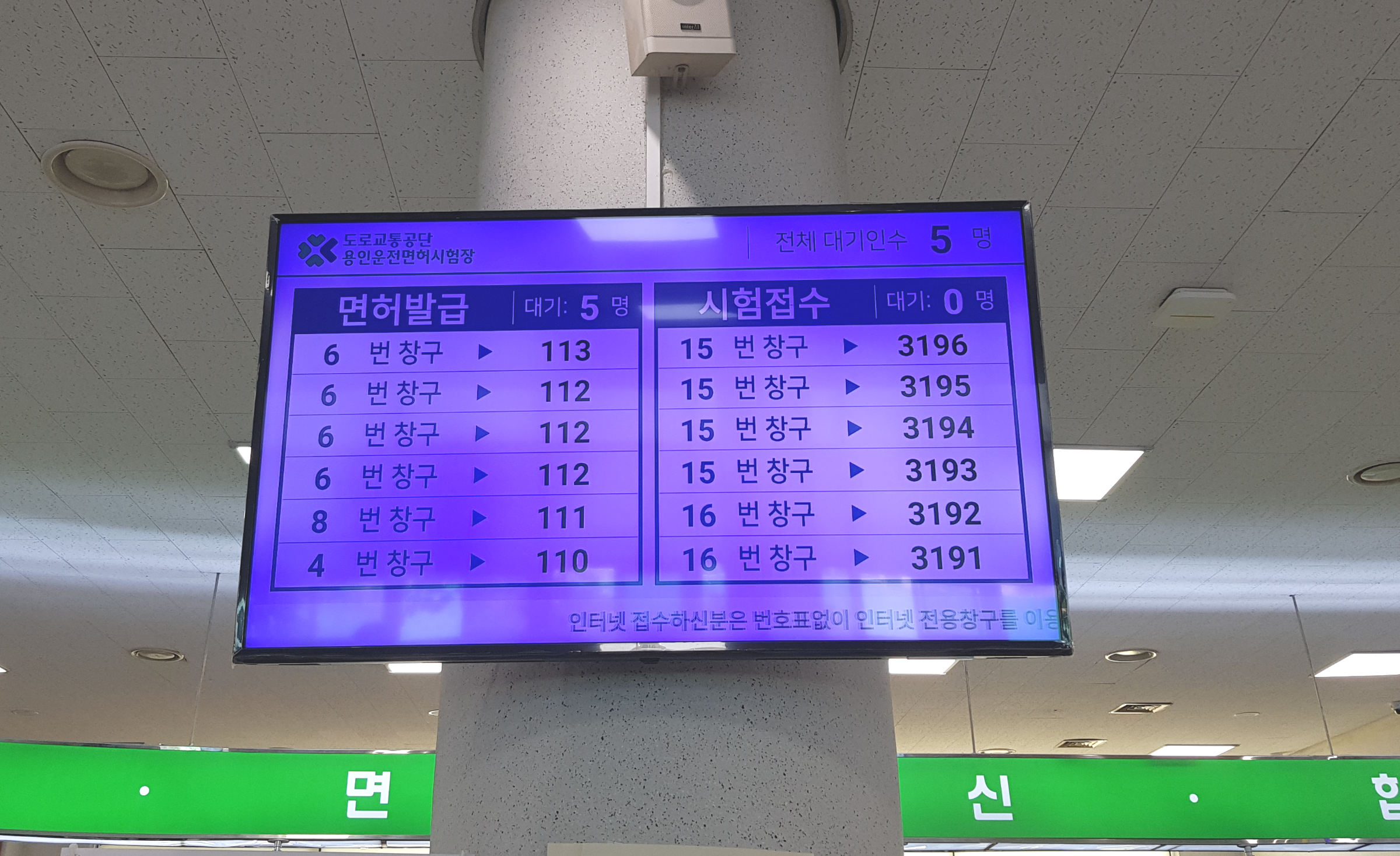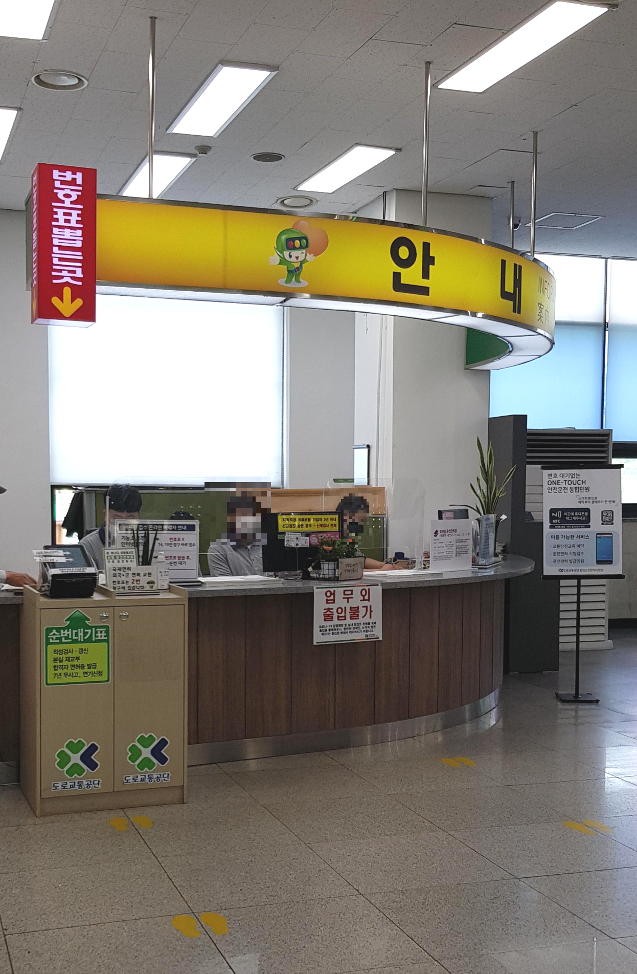 용인운전면허시험장 민원실에 가서 안내에 여쭤봤어요.