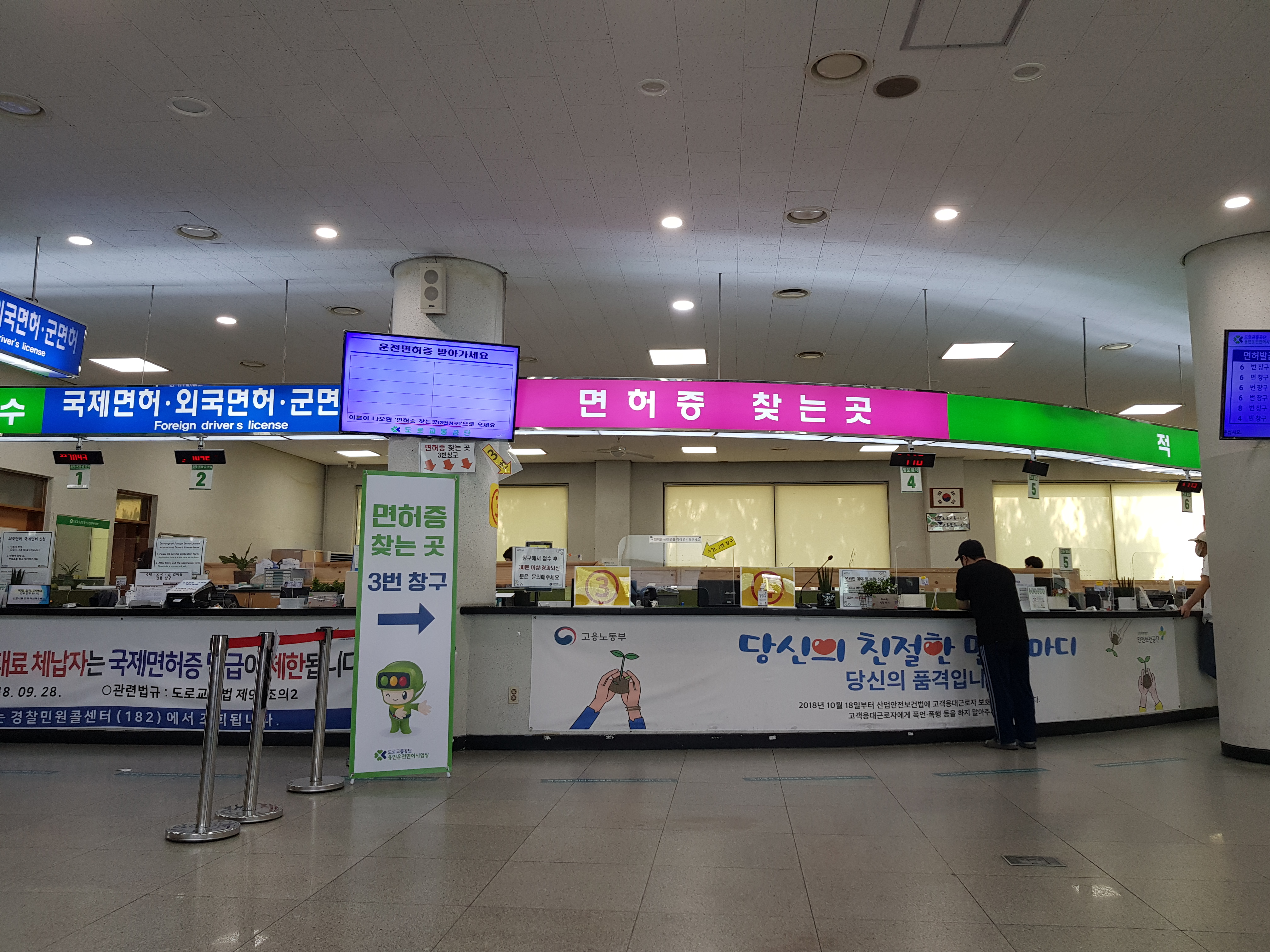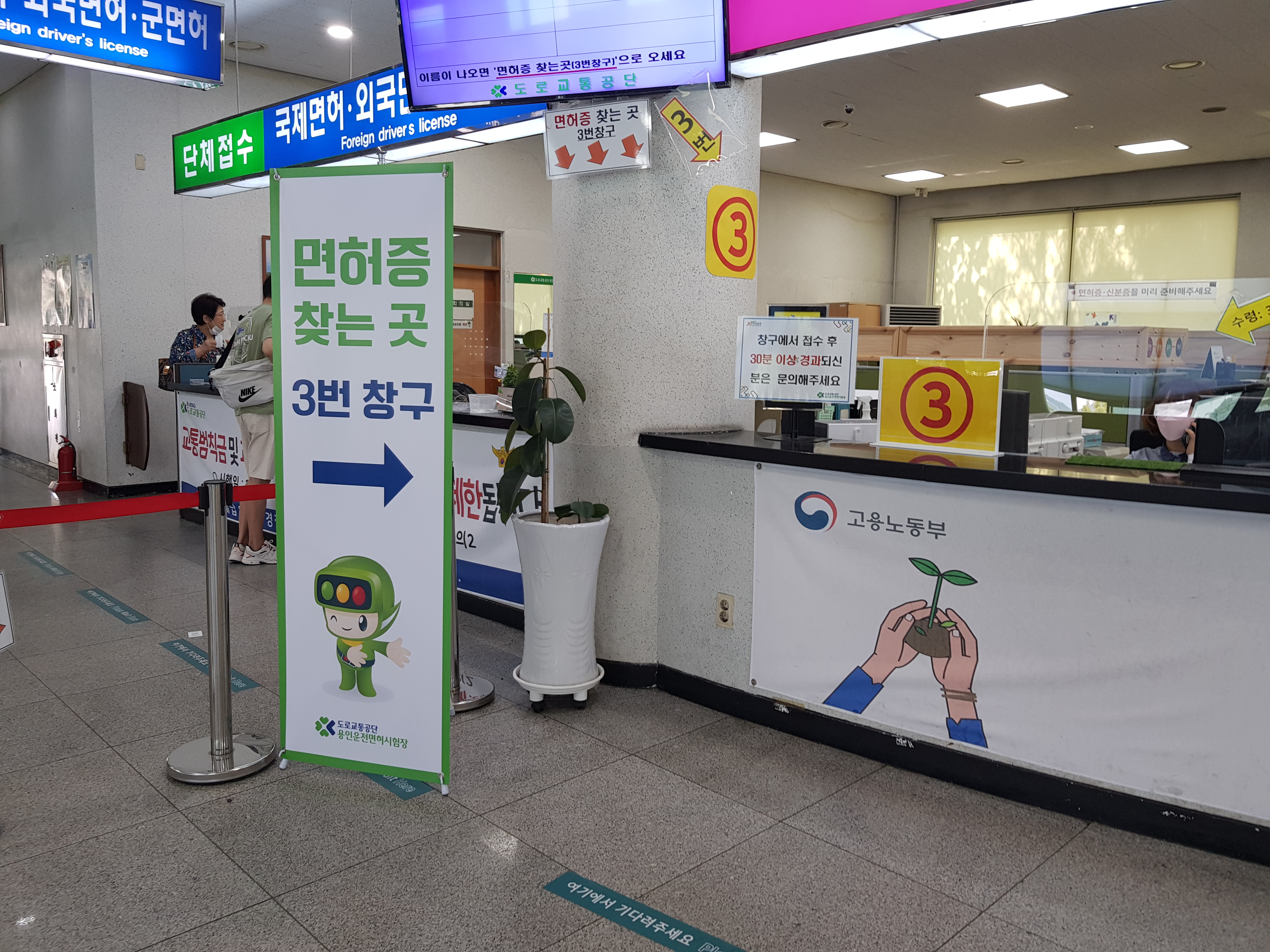3번 창구에서 면허증을 찾으라는 안내를 받았고 한 10분 기다렸던 것 같아요.
