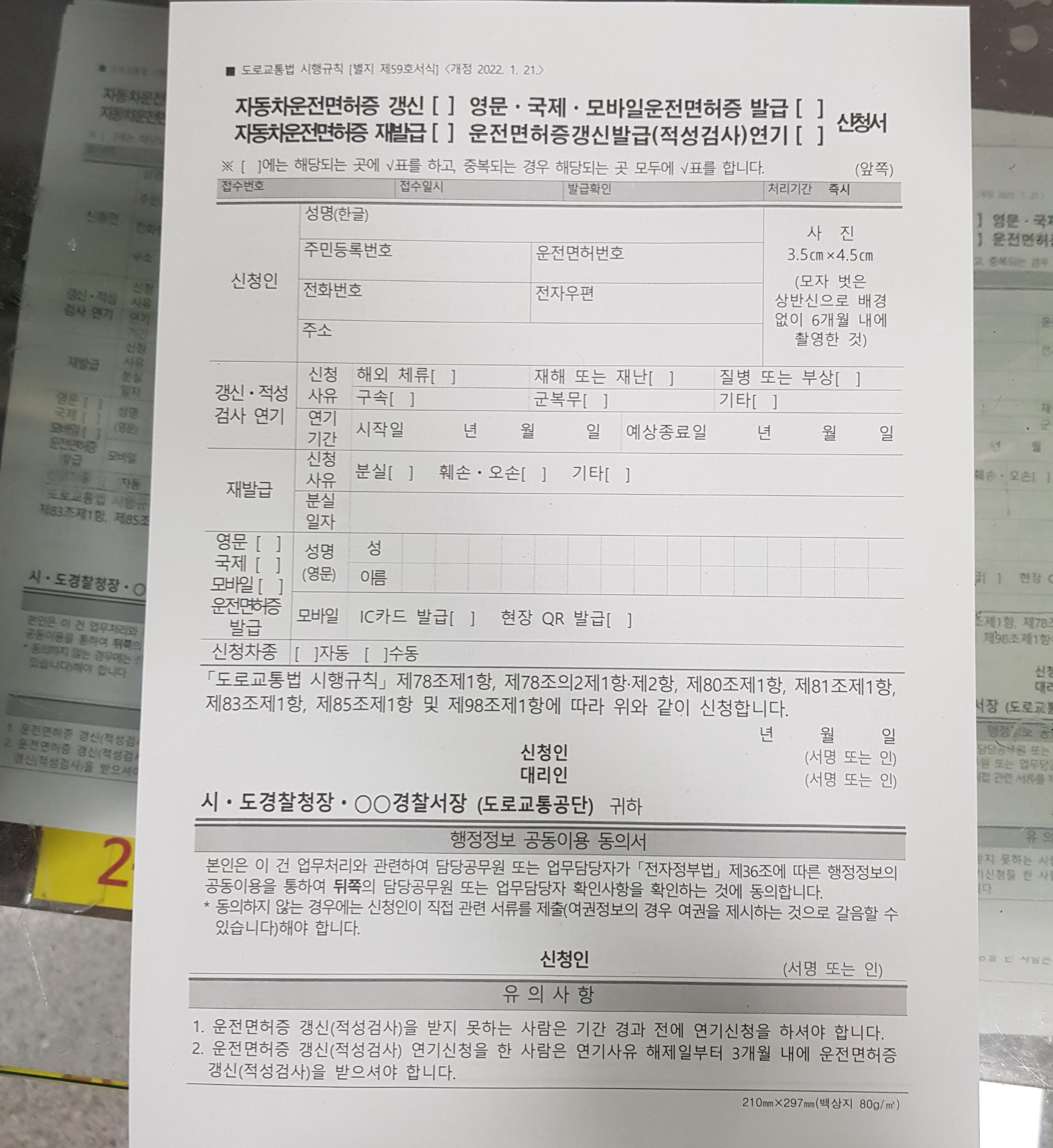 (경찰서에서 재발급 신청시 임시운전면허증 발급신청이 가능하며 20일간 운전이 가능하다고 하네요.)