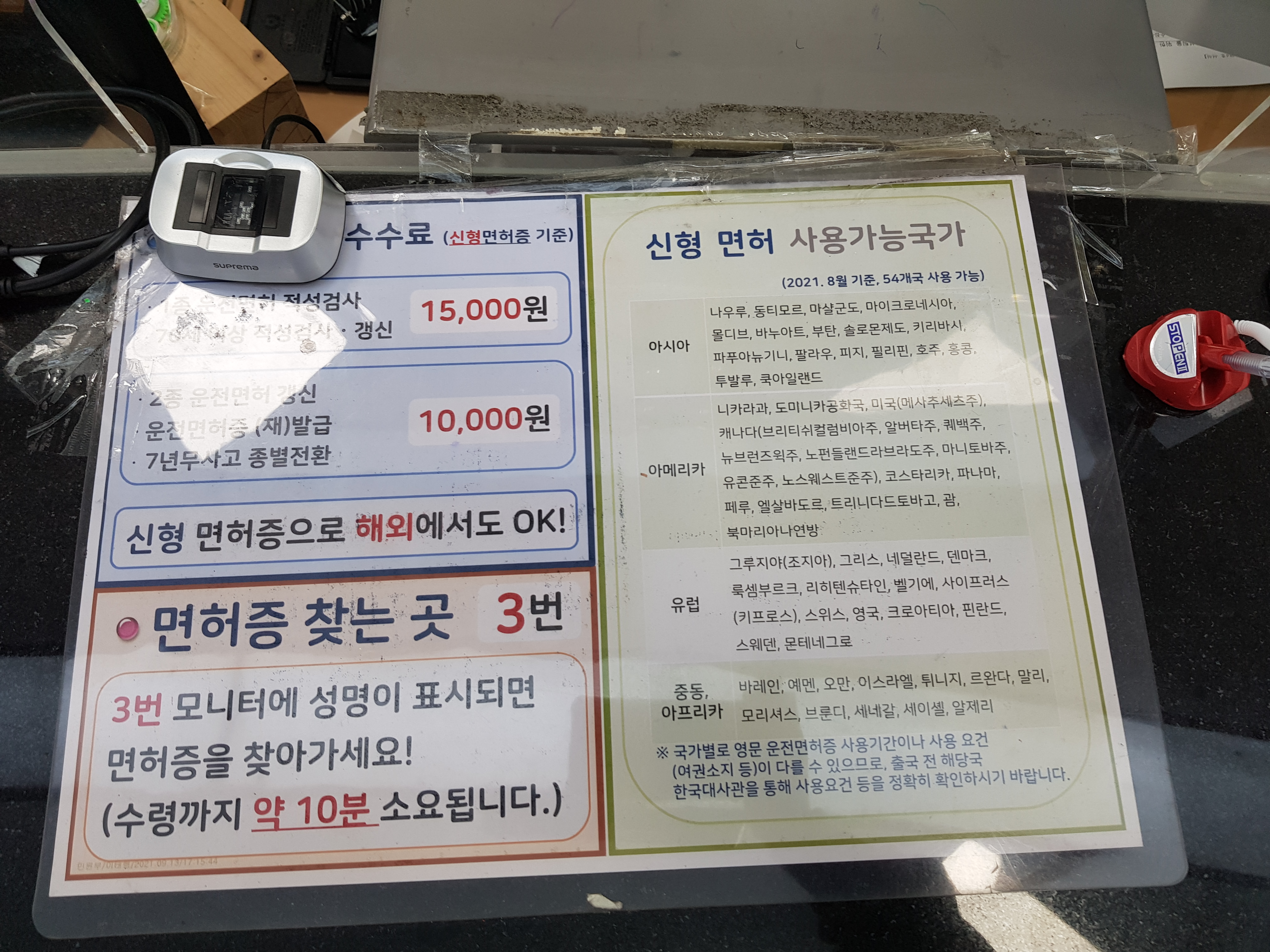 접수 창구에 신형면허 사용가능 국가가 나와있어서 찍어왔어요.