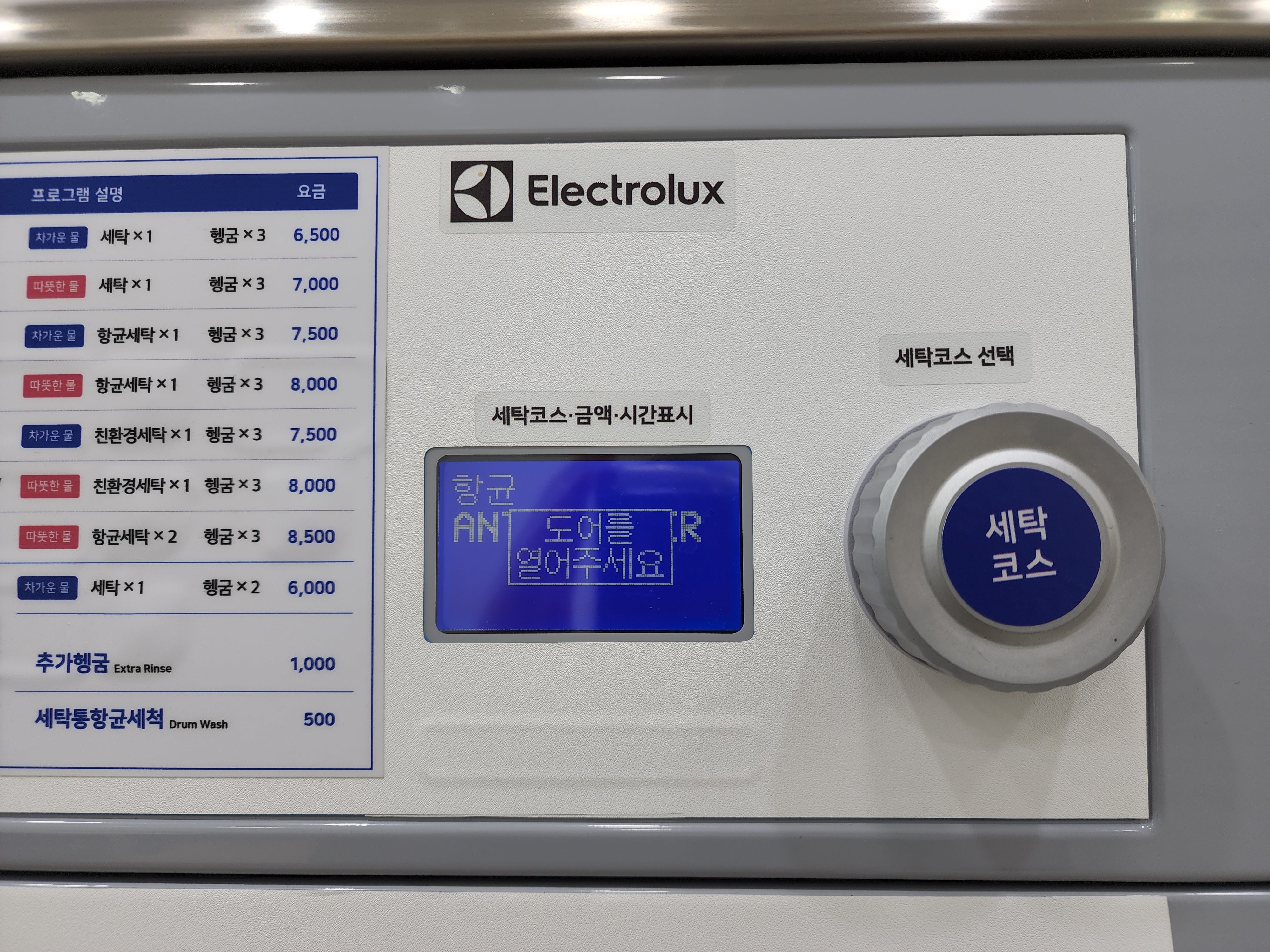 표준세탁, 표준온수세탁, 항균세탁, 항균온수세탁, 친환경세제세탁, 친환경세제온수세탁, 프리미엄세탁, 쾌속세탁이 있고 세탁메뉴마다 요금이 다르더군요. 추가헹굼 및 세탁통항균세척도 요금이 따로 책정되어있어요.