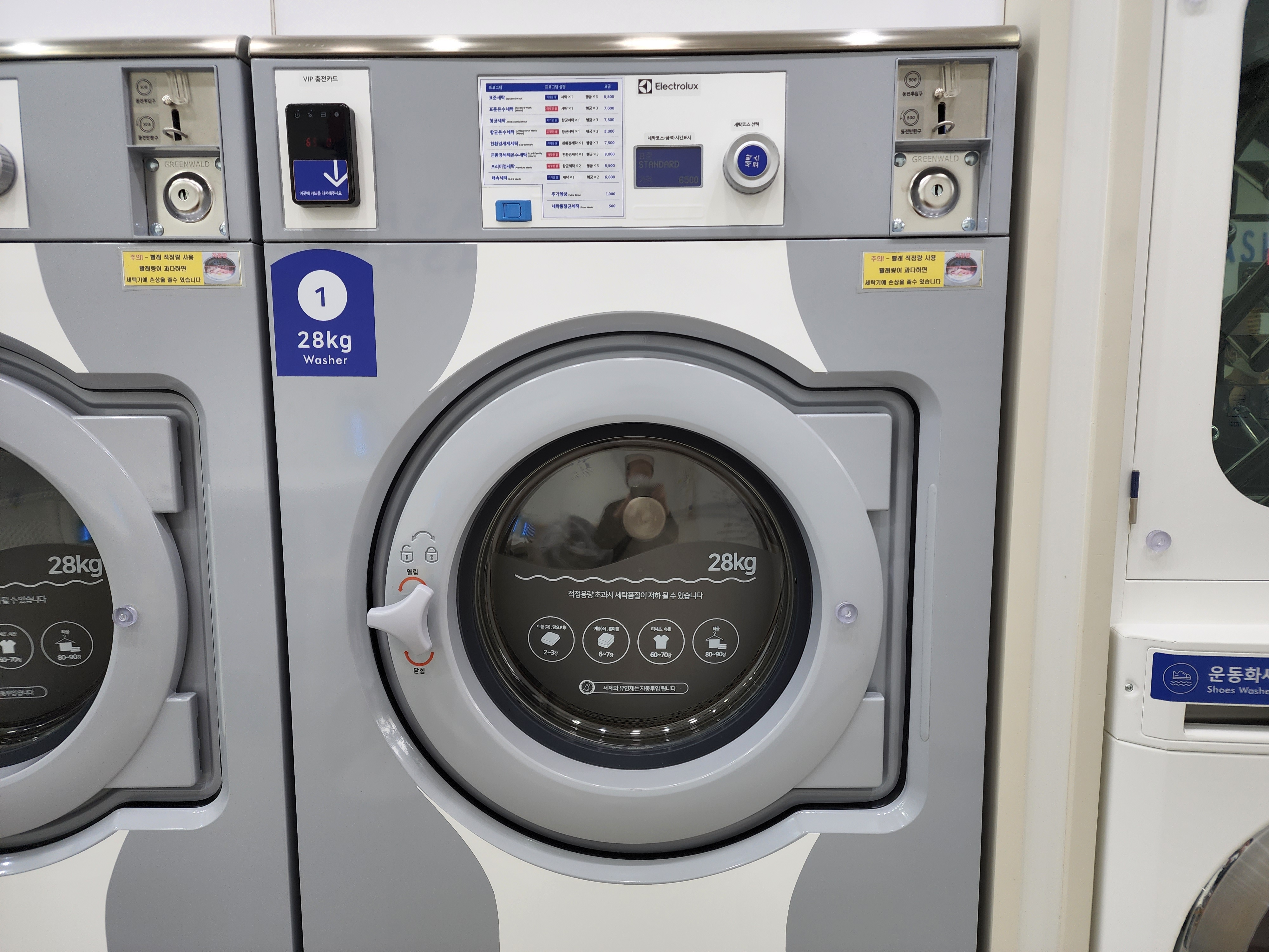 빨래방 세탁기 용량은 20kg짜리 1대와 28kg짜리 2대가 있었는데 저는 28kg짜리 세탁기를 이용했어요.