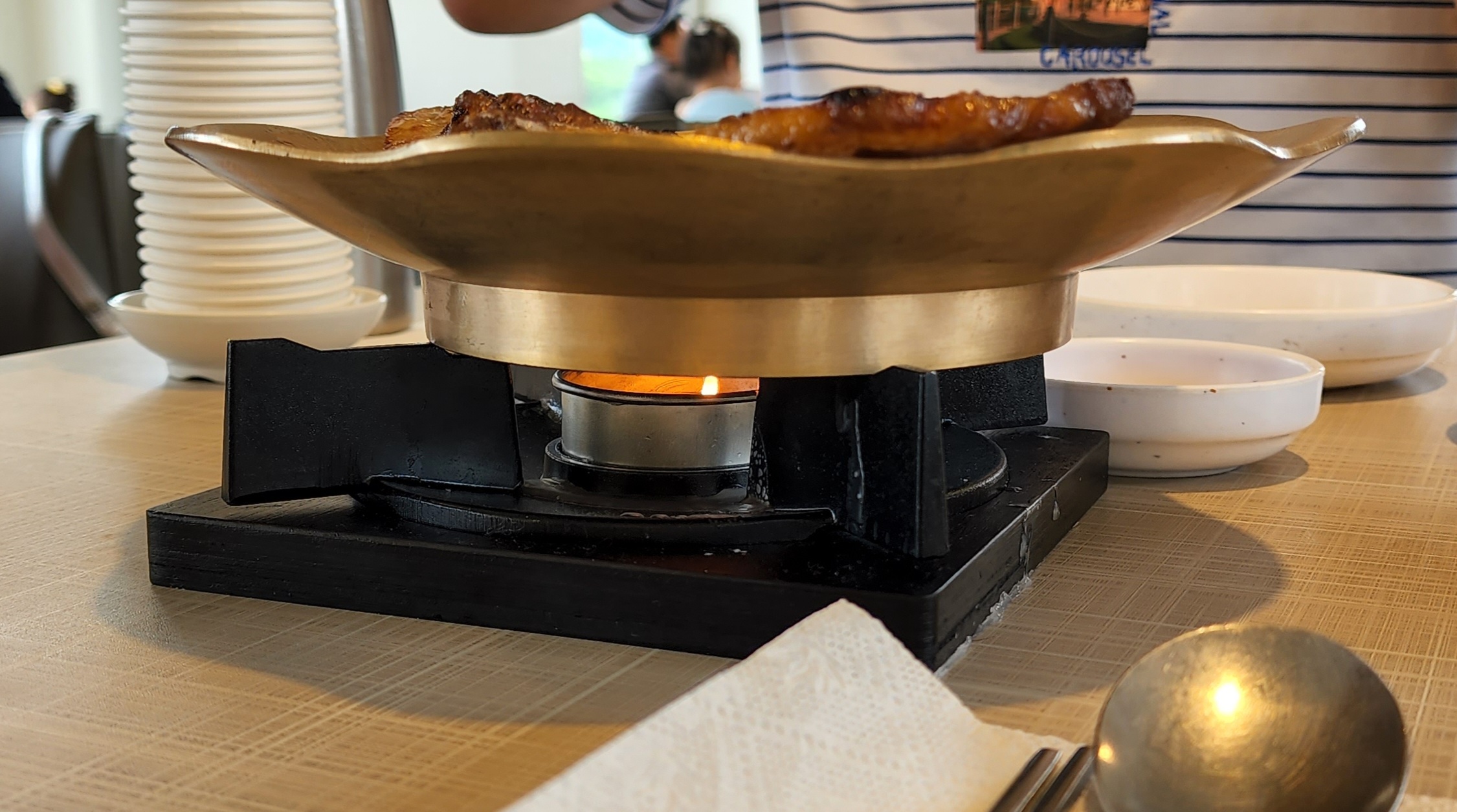 고기를 시키면 워머 위에 올려주어 따뜻하게 먹도록 하는 것 같더군요.