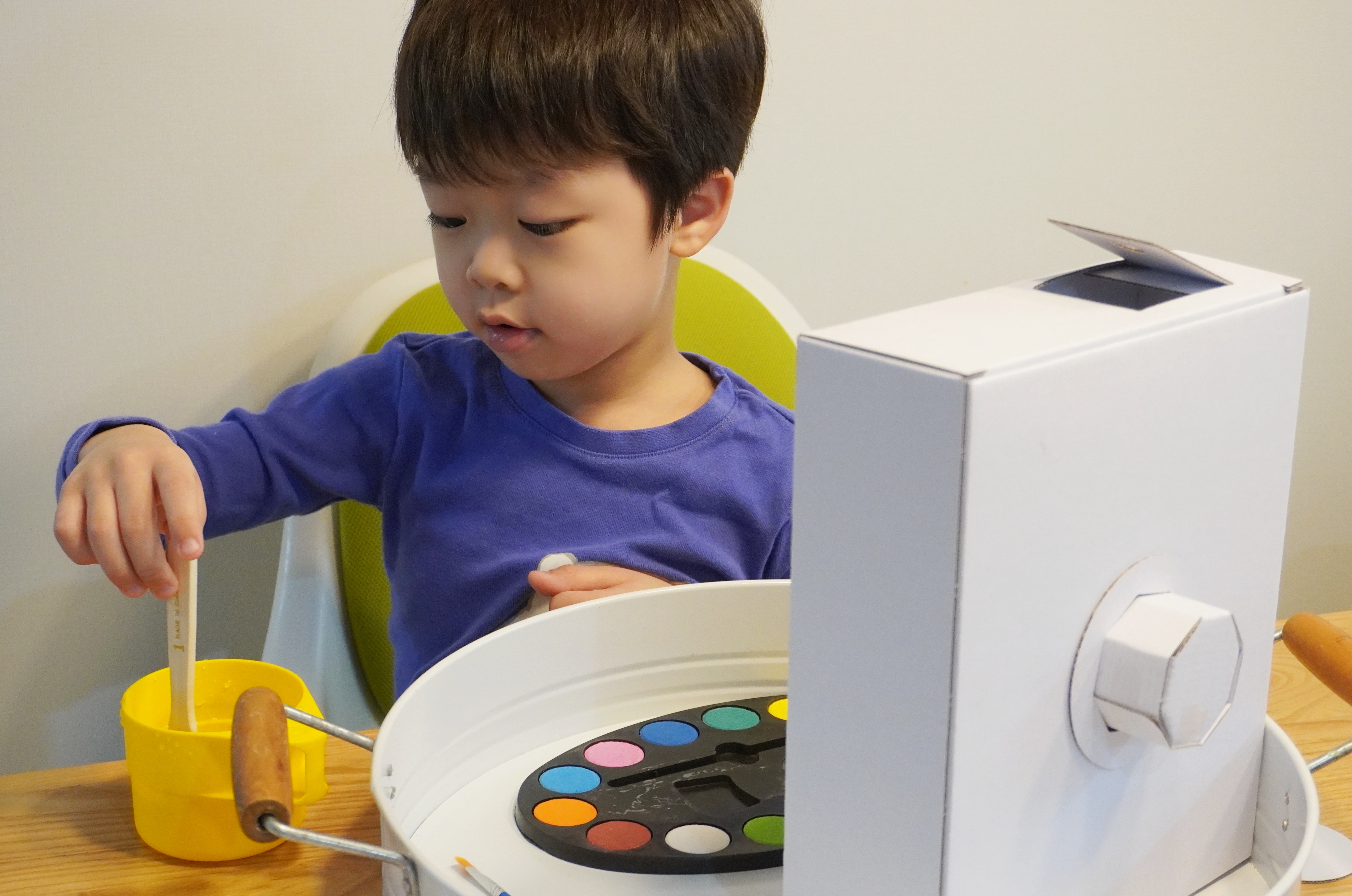 동글이는 다른 자판기 놀잇감이 집에 있지만 본인이 직접 만든 자판기에 많은 애정을 가지더라구요.