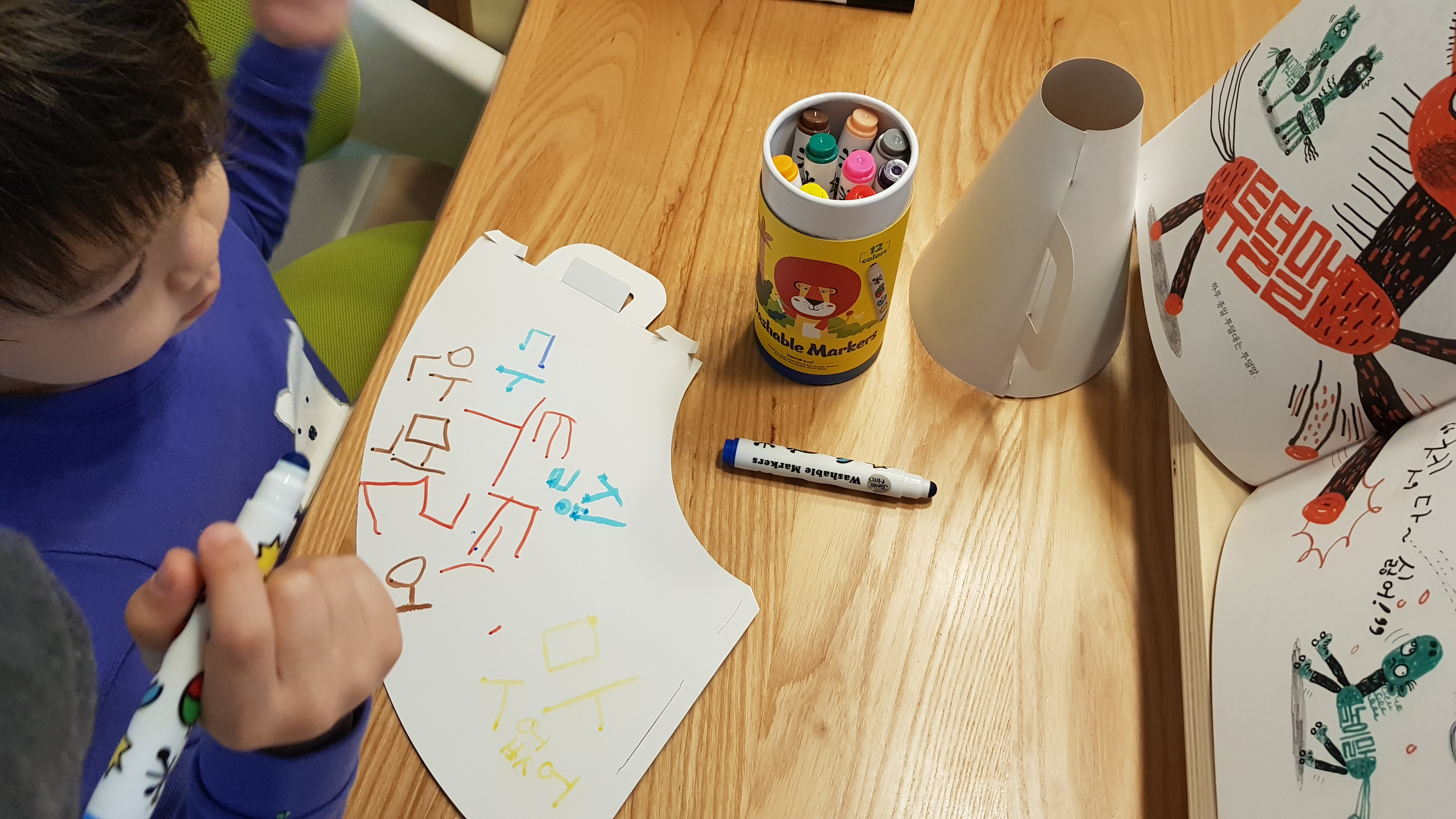 싸인펜이나 색연필, 매직 등을 이용해 자유롭게 꾸며보는 활동이었는데요,