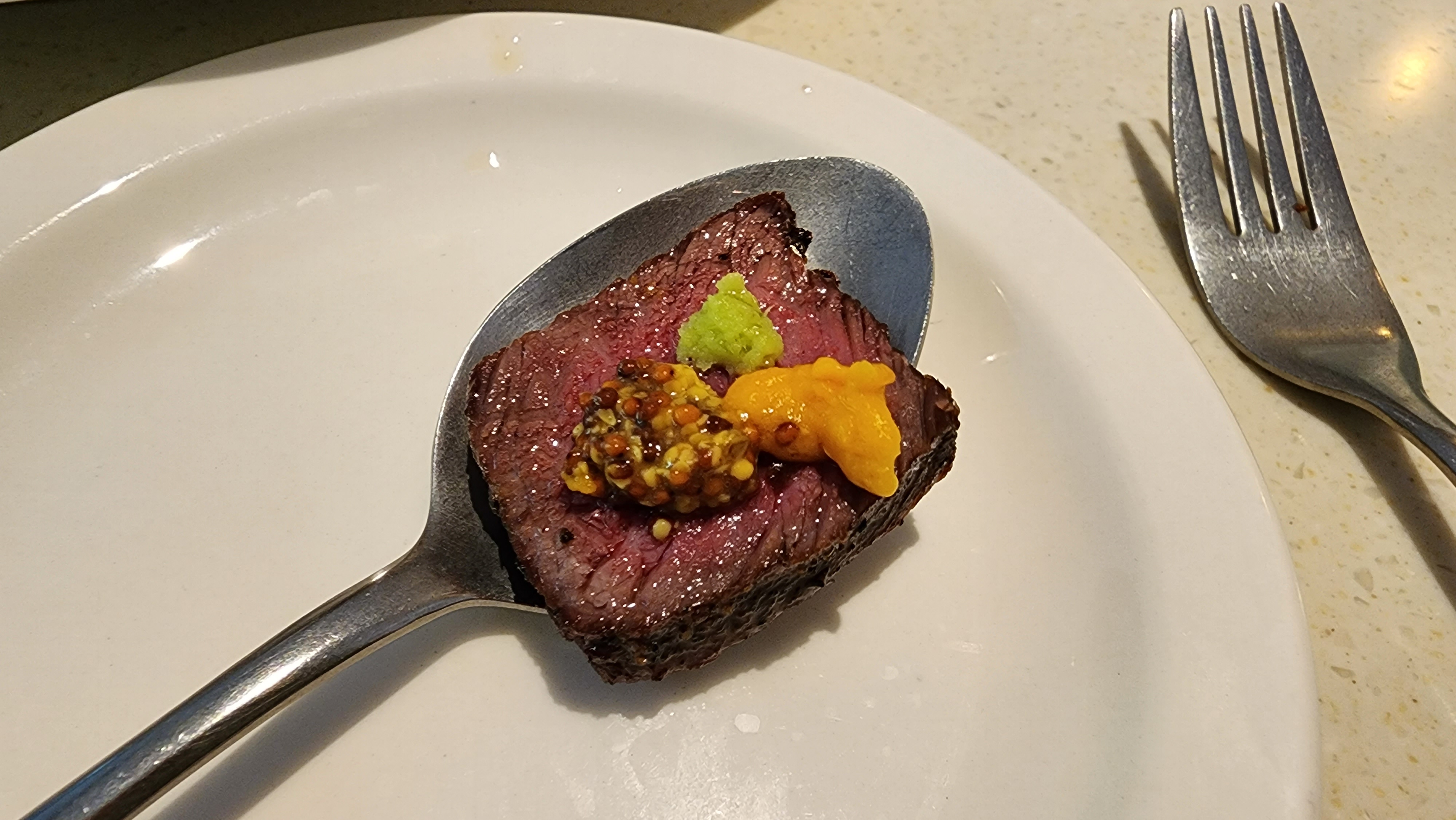 단호박퓨레, 구운버섯과 감자 방울토마토, 홀그레인 머스터드까지 괜찮은 조합이었어요.
