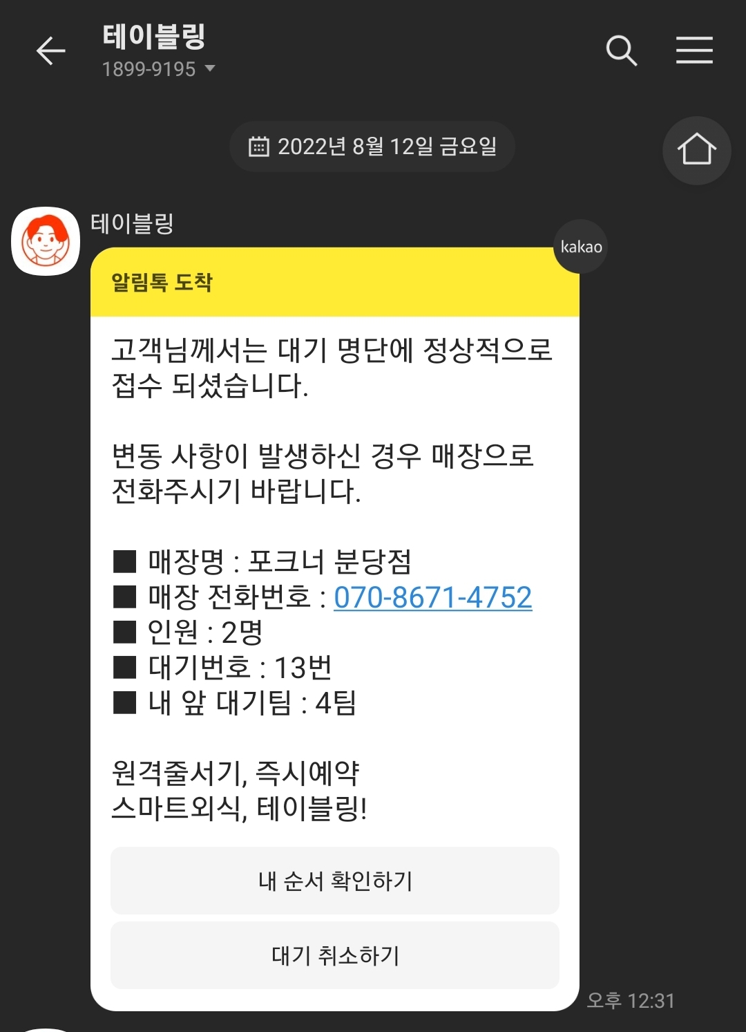 테이블링 어플 쓰시는 분들은 원격 줄서기 하고 가시면 줄 서는 시간이 절약되실 텐데요, 저는 그냥 가서 키오스크에 주문하고 대기했어요.