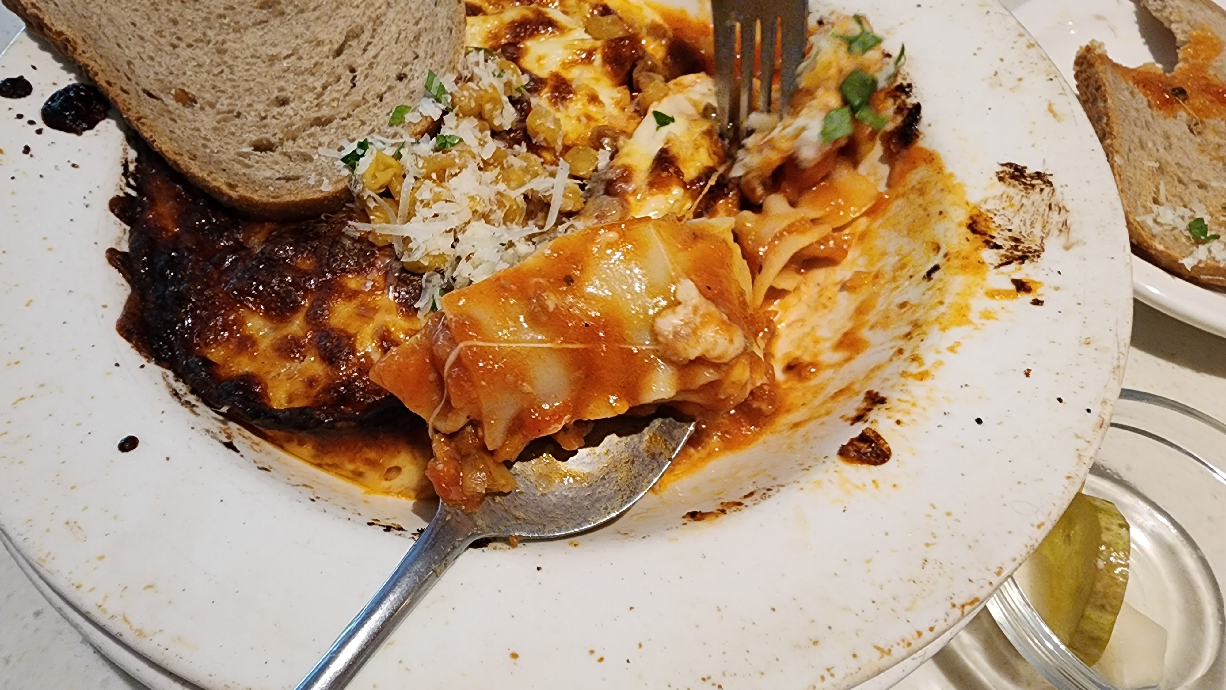짭짤한 소스와 함께 넓은 라자냐 면을 먹는것도 좋지만 주욱 늘어나는 치즈를 먹는 재미도 있었답니다.